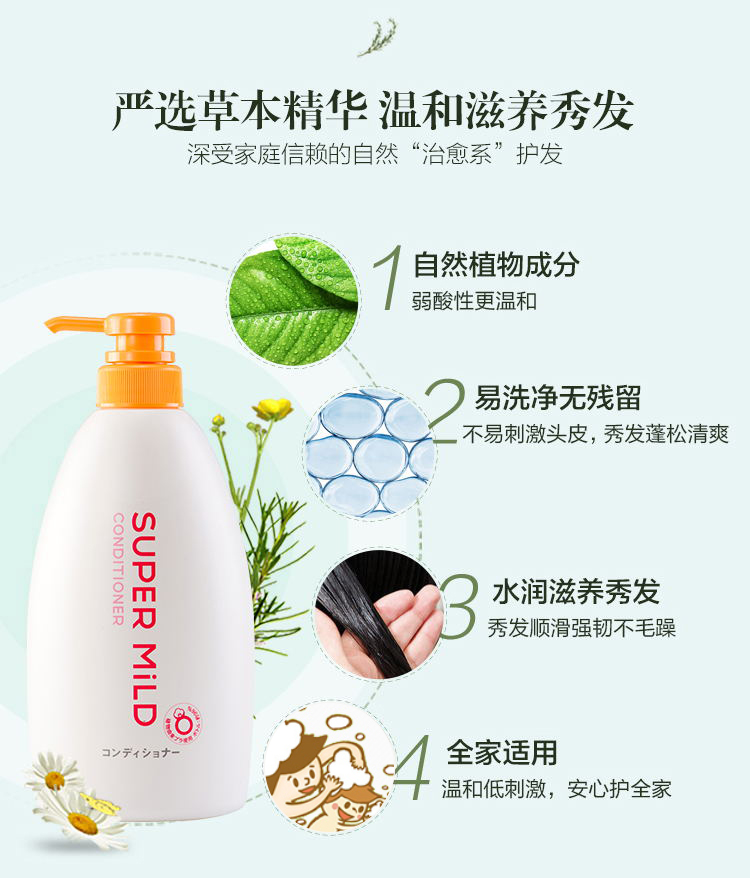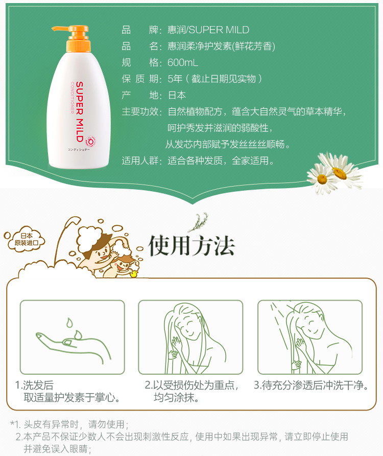 日本进口资生堂惠润(SUPER MiLD)柔净(鲜花芳香)护发素 600ml