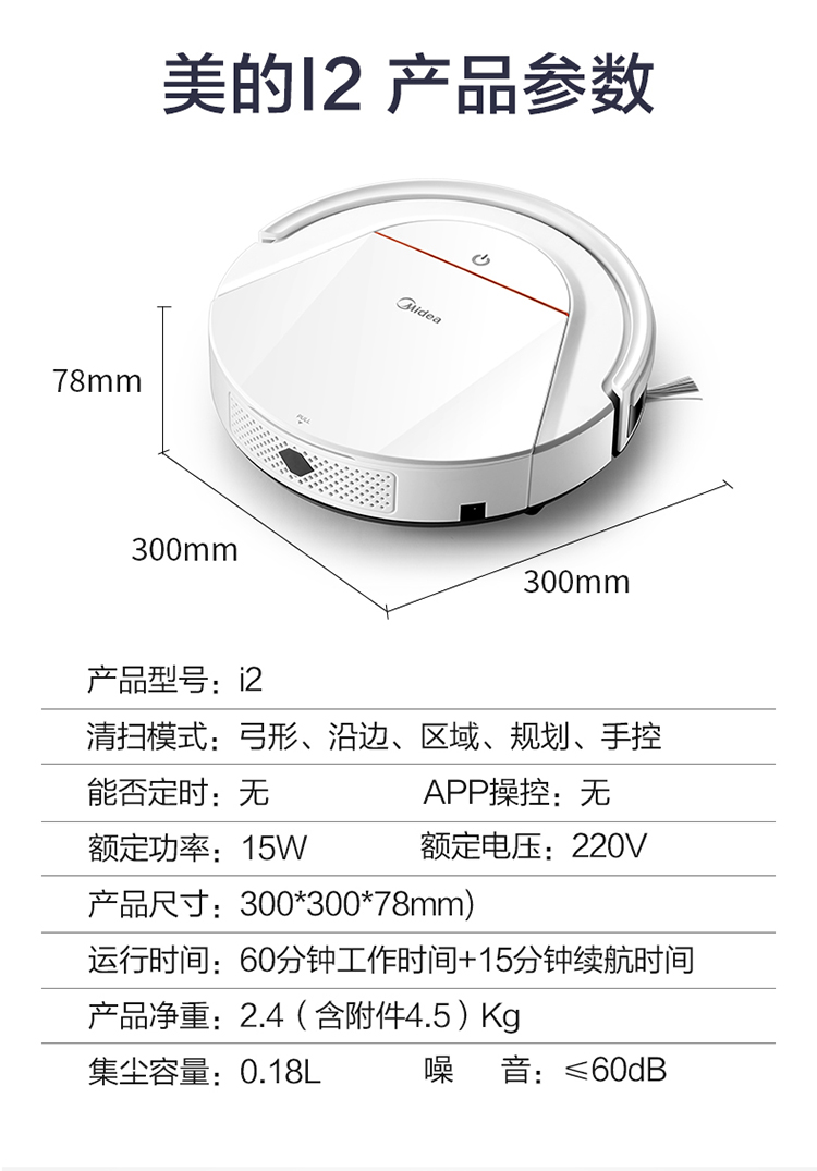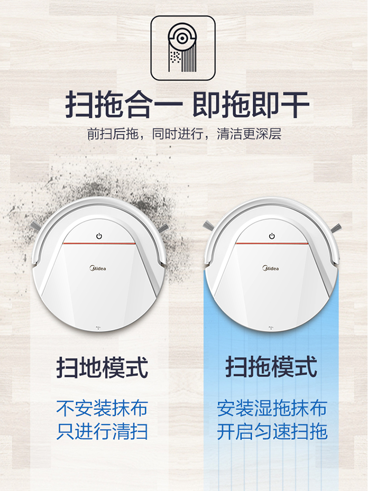 美的 Midea 扫地机器人i2 扫拖一体机智能家用吸尘器 全自动智能扫地机
