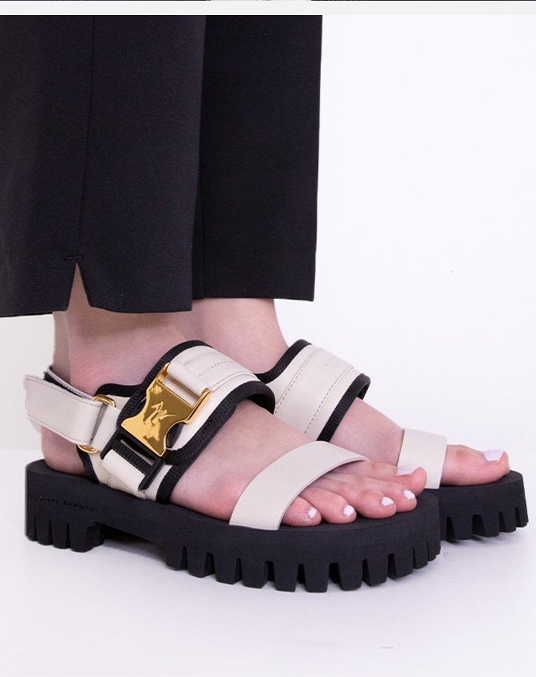 Giuseppe Zanotti 女士签名徽标平跟凉鞋 白色 E400065A002