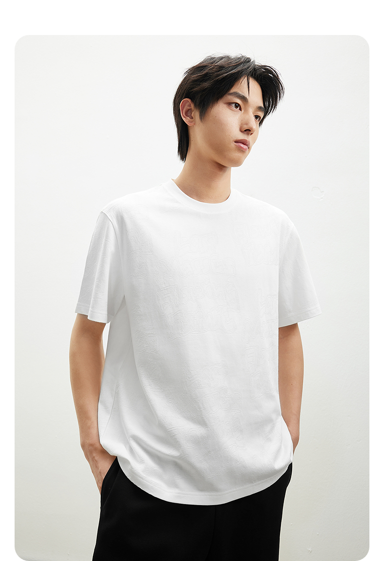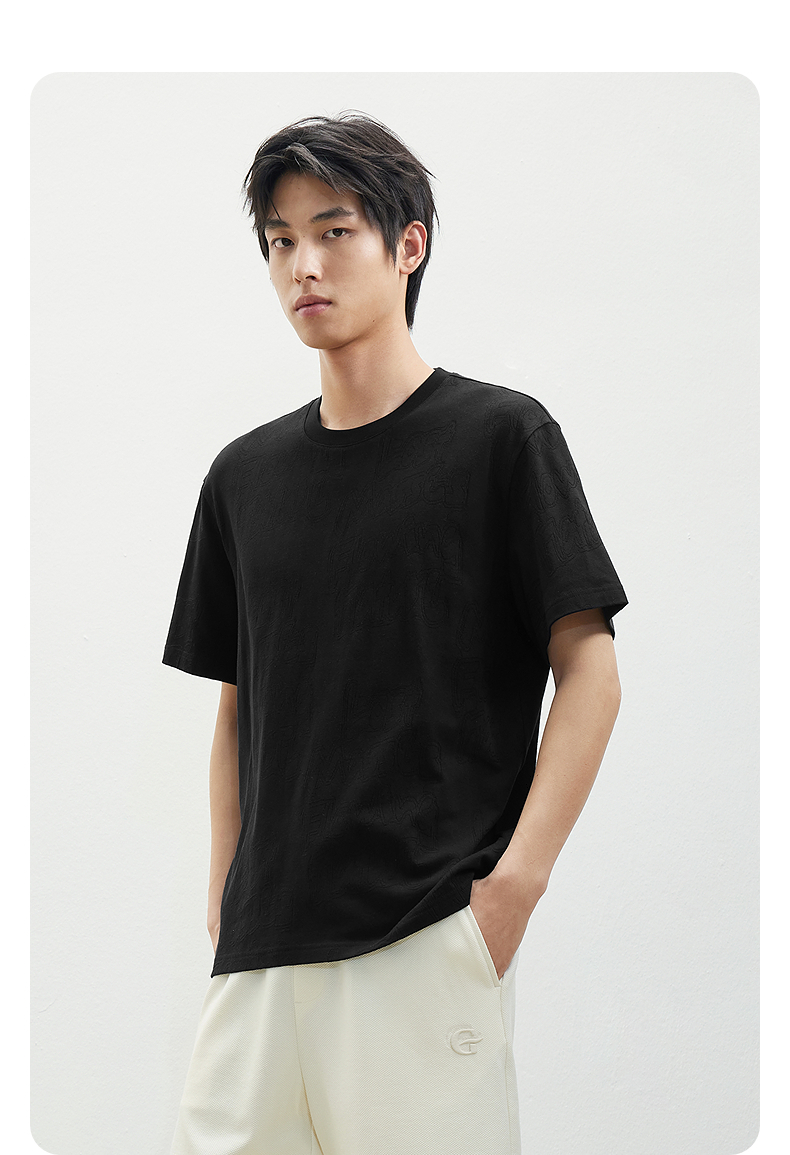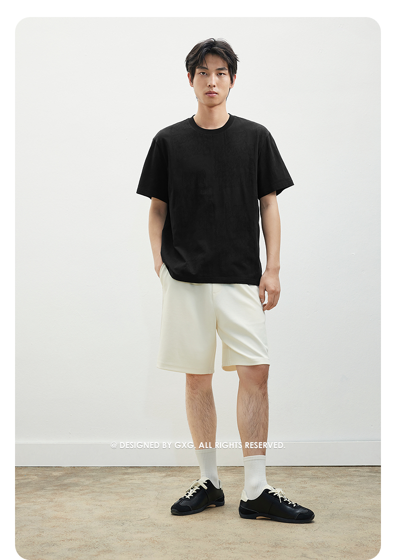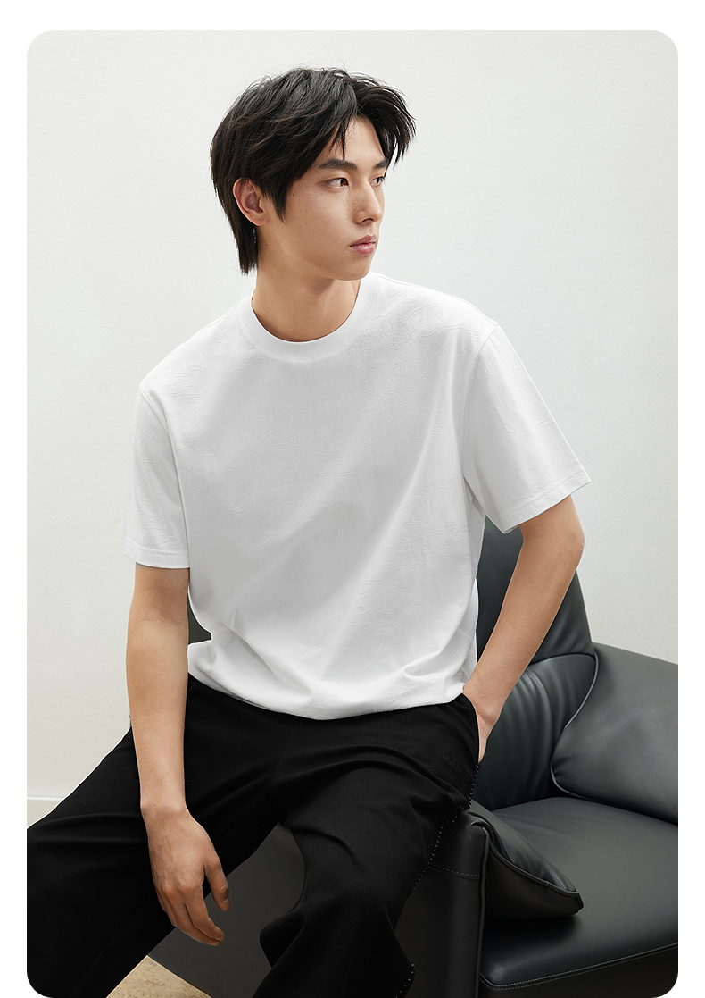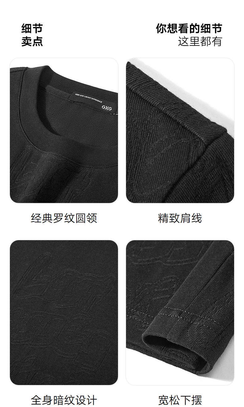 2025春夏热卖GXG男士短袖经典圆领休闲暗纹设计含棉男士短袖