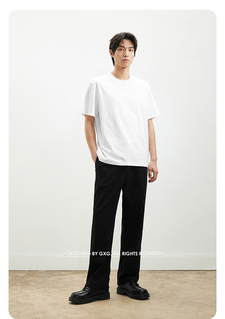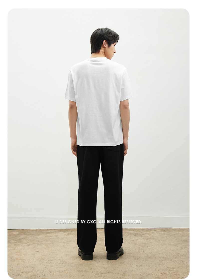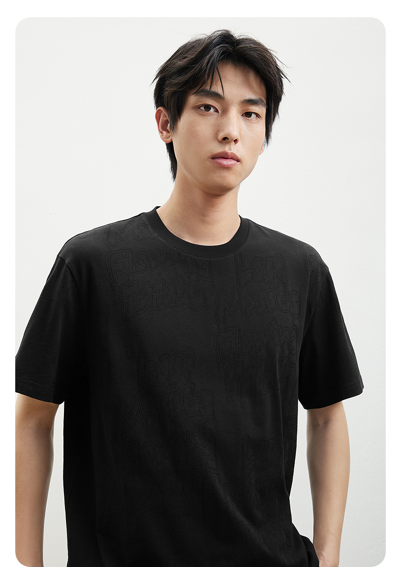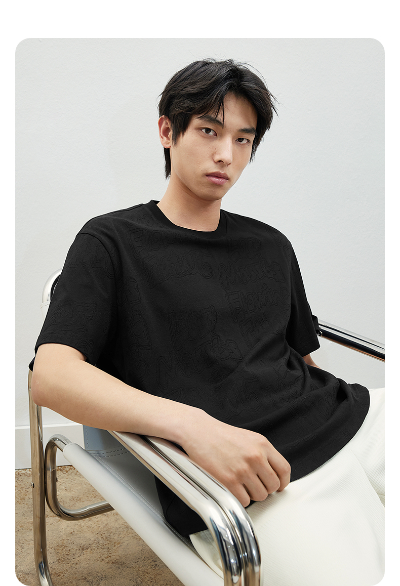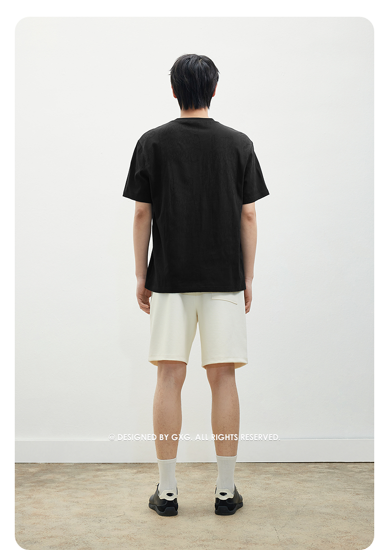 2025春夏热卖GXG男士短袖经典圆领休闲暗纹设计含棉男士短袖