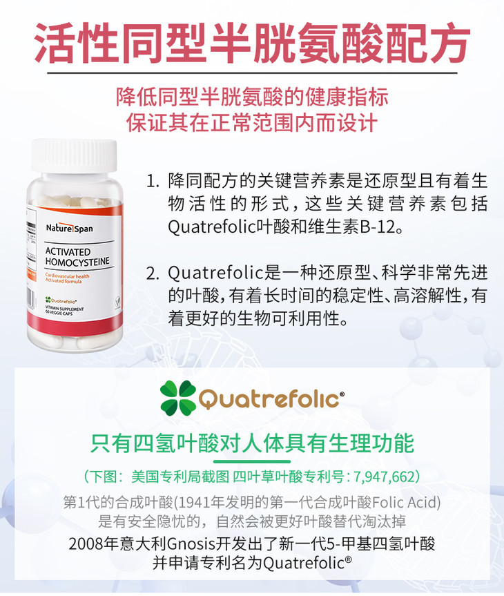 NatureSpan倍能适 同型半胱氨酸甲基活性叶酸b6b12甜菜碱60粒 NATURESPAN倍能适