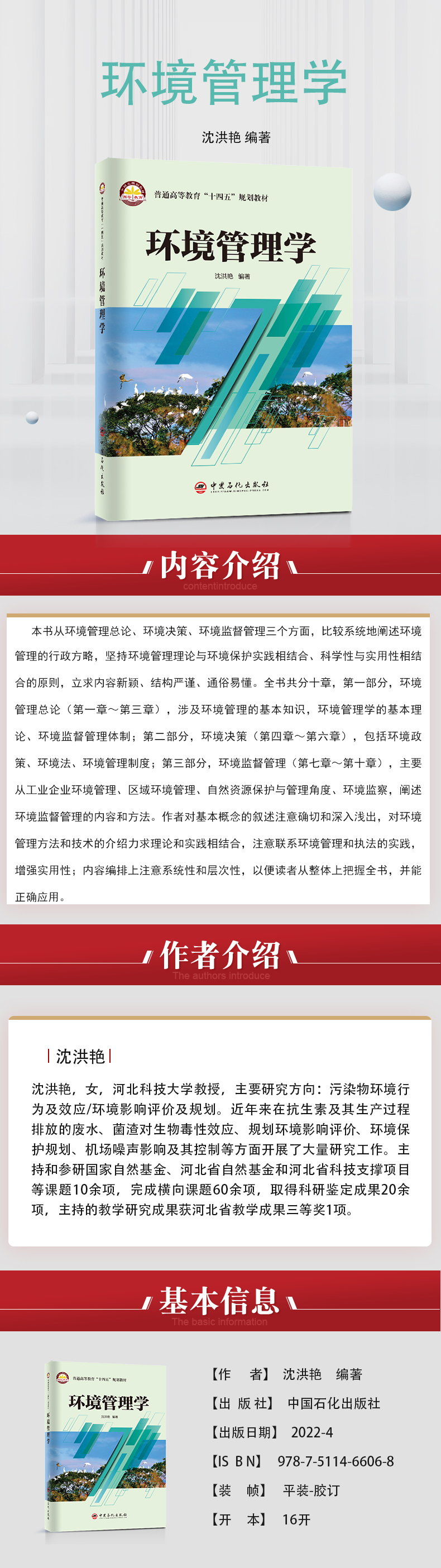 本书从环境管理总论、环境决策、环境监督管理三个方面,比较系统地阐述环境管理的行政方略,坚持环境管理理论与环境保护实践相结合、科学性与实用性相结合的原则,立求内容新颖、结构严谨、通俗易懂。全书共分十章,*部分,环境管理总论(*章~第三章),涉及环境管理的基本知识,环境管理学的基本理论、环境监督管理体制;*部分,环境决策(第四章~第六章),包括环境政策、环境法、环境管理制度;第三部分,环境监督管理(第七章~第十章),主要从工业企业环境管理、区域环境管理、自然资源保护与管理角度、环境监察,阐述环境监督管理的内容和方法。作者对基本概念的叙述注意确切和深入浅出,对环境管理方法和技术的介绍力求理论和实践相结合,注意联系环境管理和执法的实践,增强实用性;内容编排上注意系统性和层次性,以便读者从整体上把握全书,并能正确应用。