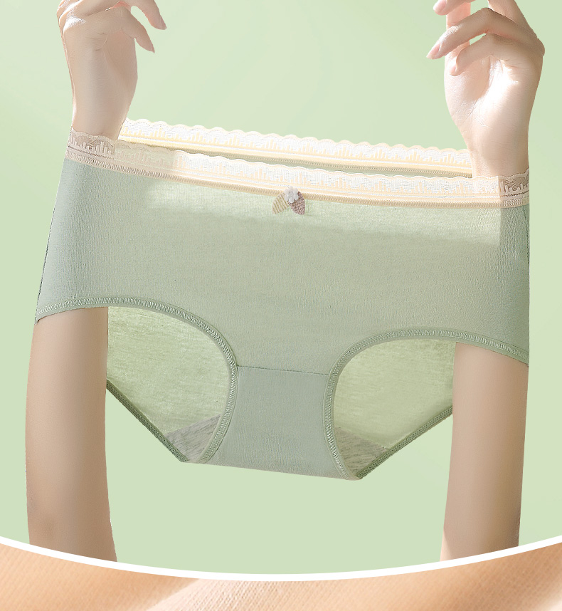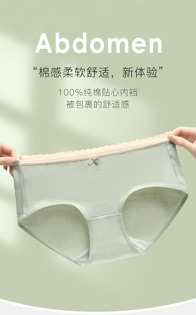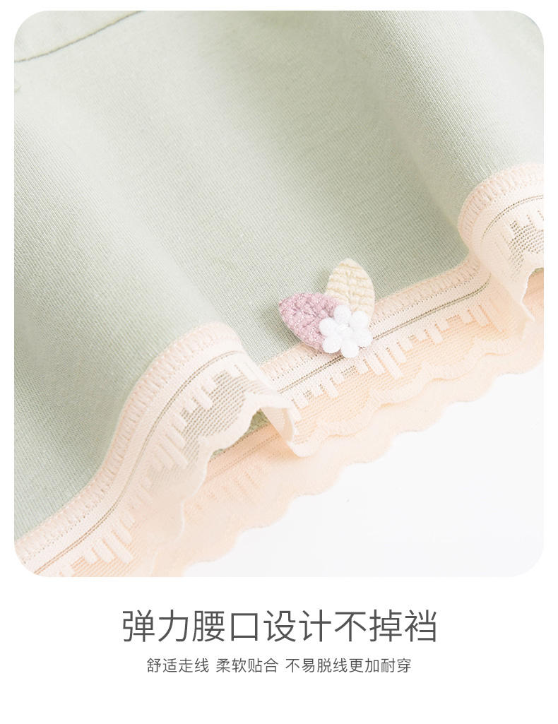 洁丽雅4条装中腰纯棉女士内裤蕾丝腰边小清新纯棉底裆内裤女