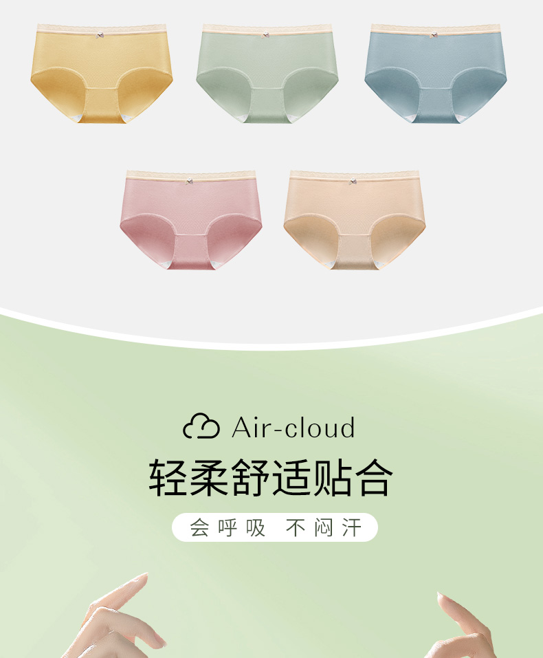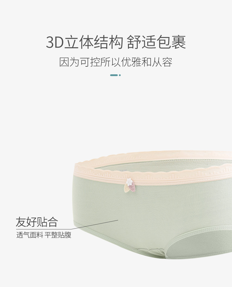 【7A抑菌】洁丽雅3条装中腰纯棉女士内裤高弹舒适亲肤透气三角裤