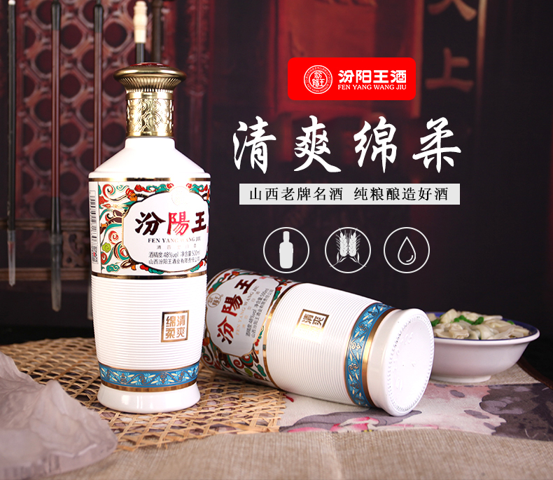 汾阳王48度白瓷 清爽绵柔500ml*6瓶装清香型白酒纯粮酿造商务团圆
