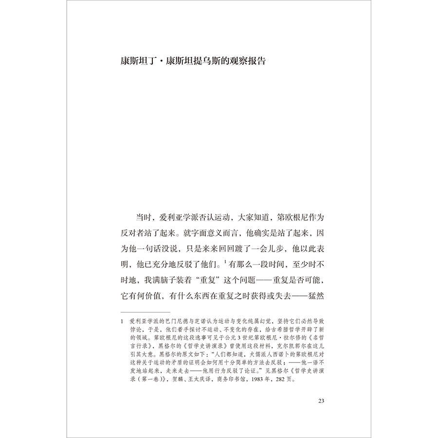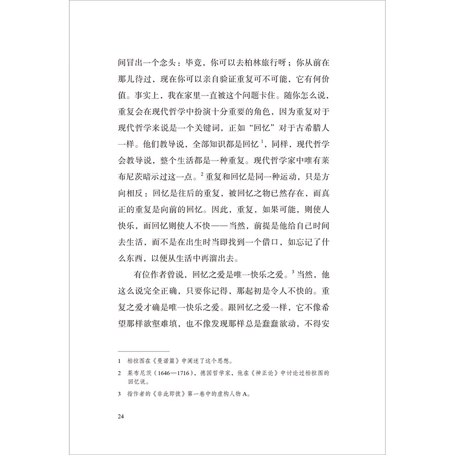 《重复》出版于1843 年,这本小册子虽是克尔凯郭尔的一部假名作品,但在他的全部作品中却占有突出地位,因为它与其个人生活密切相关:他要借这部作品彻底解决与蕾琪娜·奥尔森(Regine Olsen)的痛苦关系,并为自己的生活树立起明确的奋斗目标——“重复”。