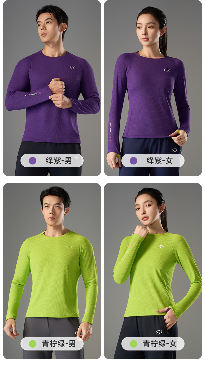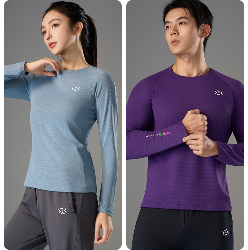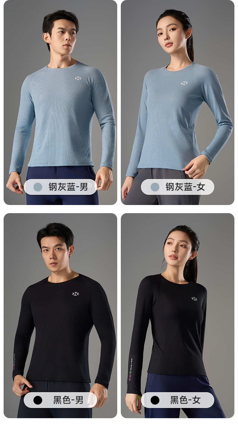 有为者/加厚呼吸方格圆领长袖 跑步运动速干户外秋冬长袖T男女款