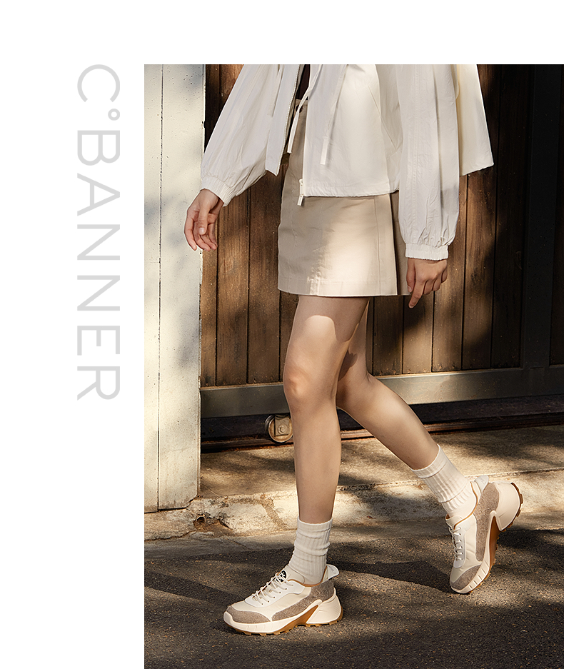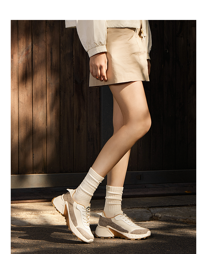 千百度休闲运动鞋女秋新防滑户外厚底老爹鞋A24415412