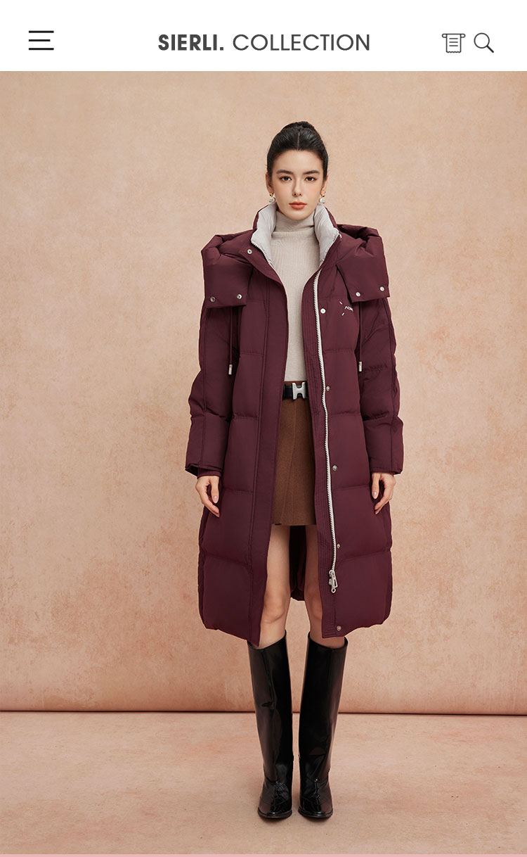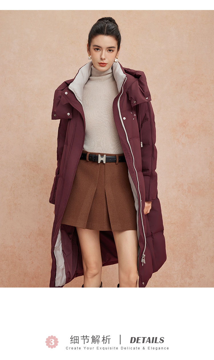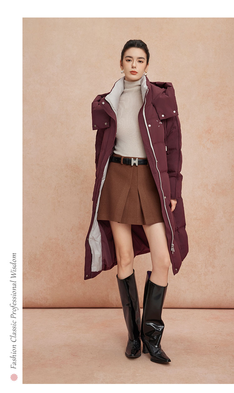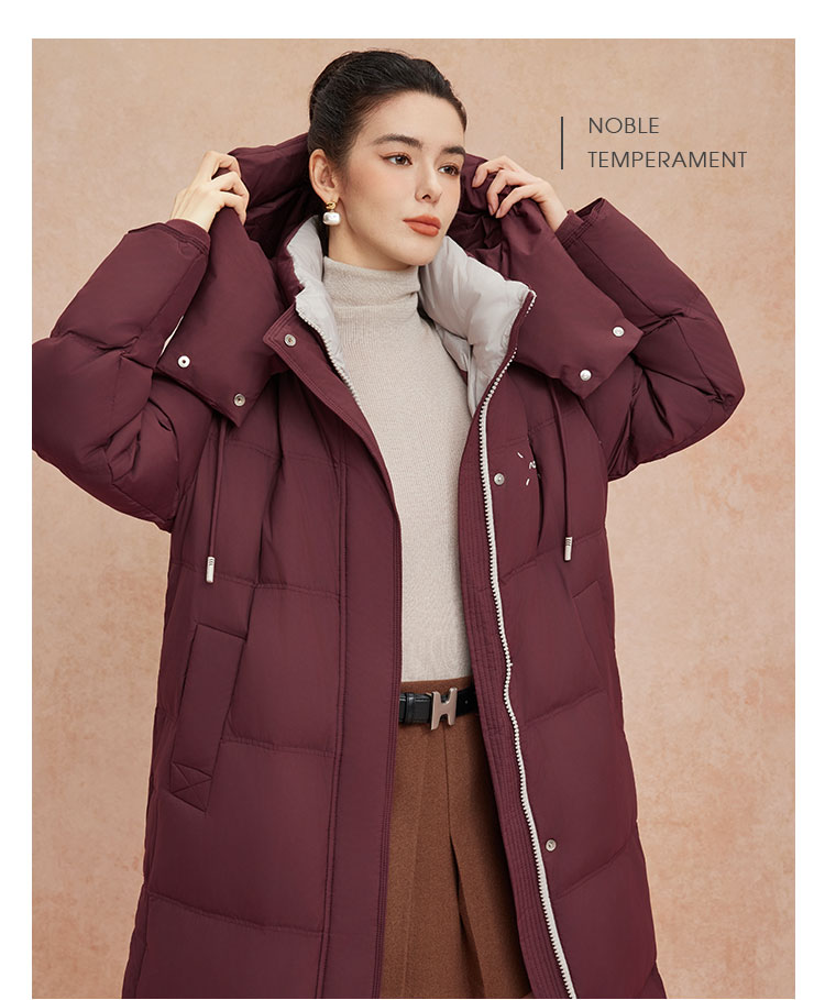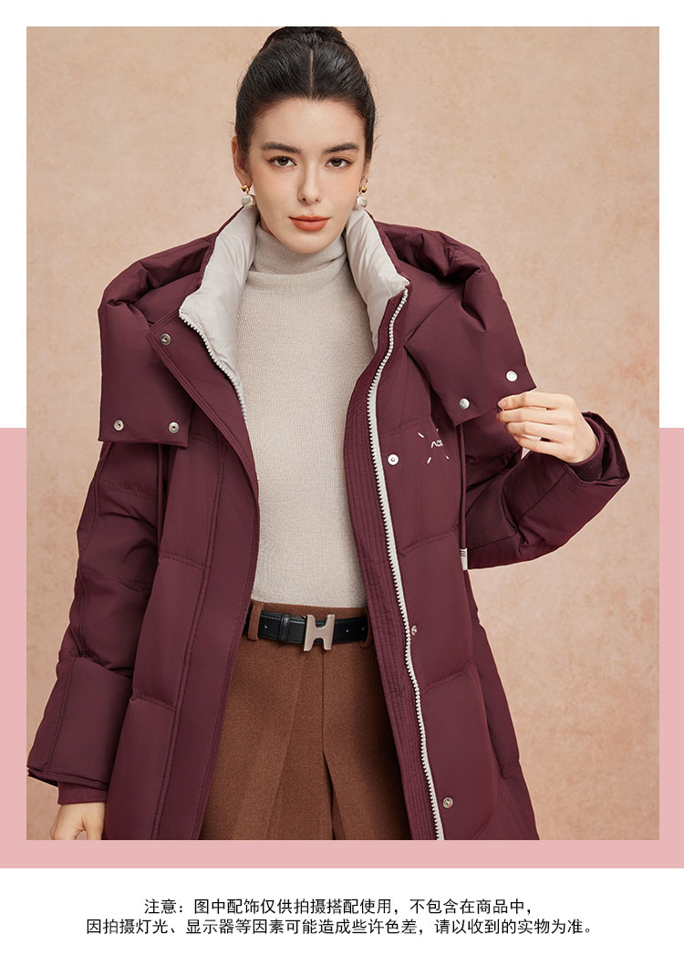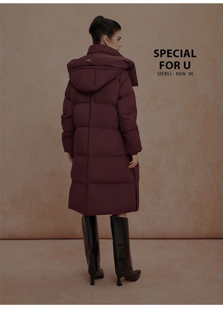 QR008斯尔丽25新款冬季连帽长款休闲面包服宽松加厚90绒时尚减龄羽绒服