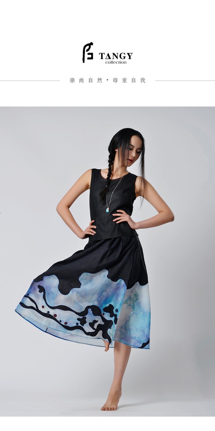 TANGY Collection/天意精品春秋新品春融系列莨绸真丝绣花连衣裙