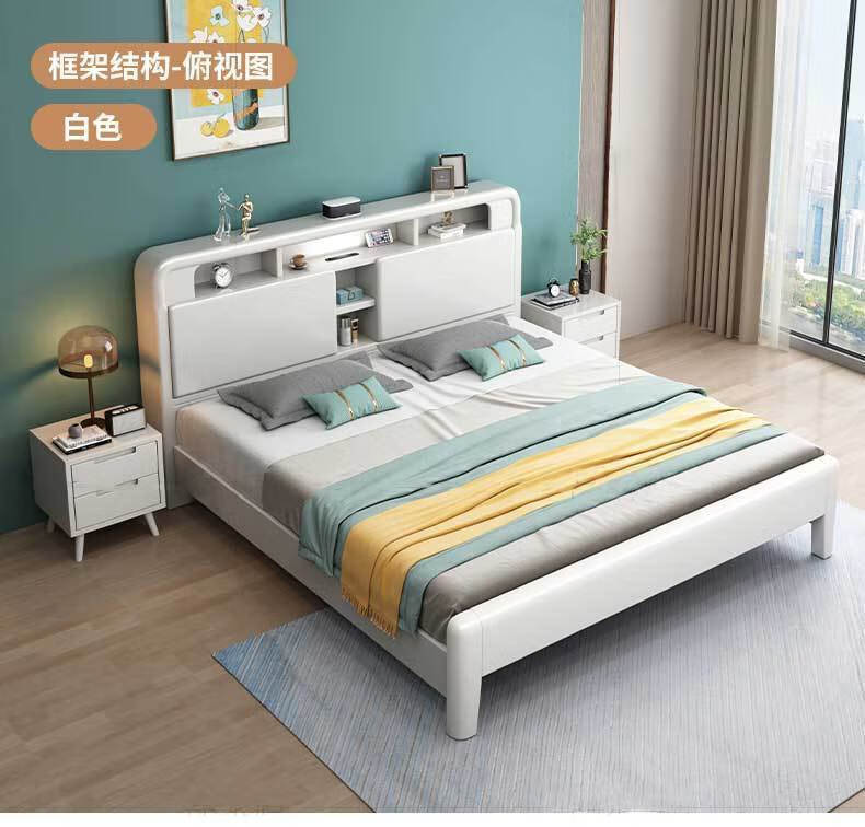 北欧风实木床A001#硬靠 .靠背可打开 .胡桃色(齐)