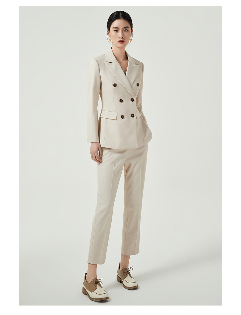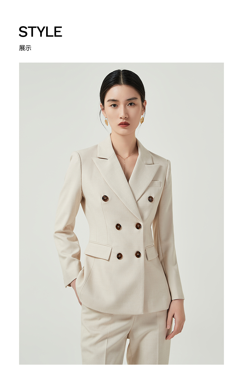 IWY/杏色西装套装女高级感春秋新款通勤职业正装西服小个子韩版两件套C12353+P12312