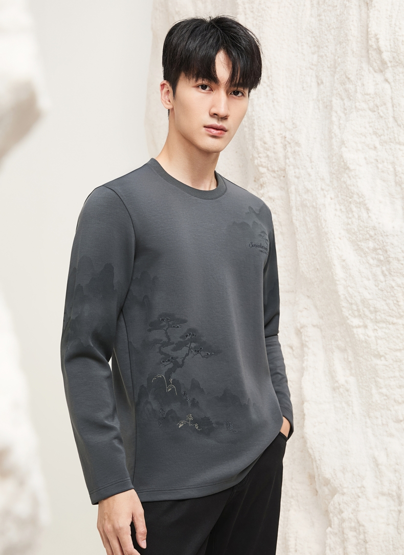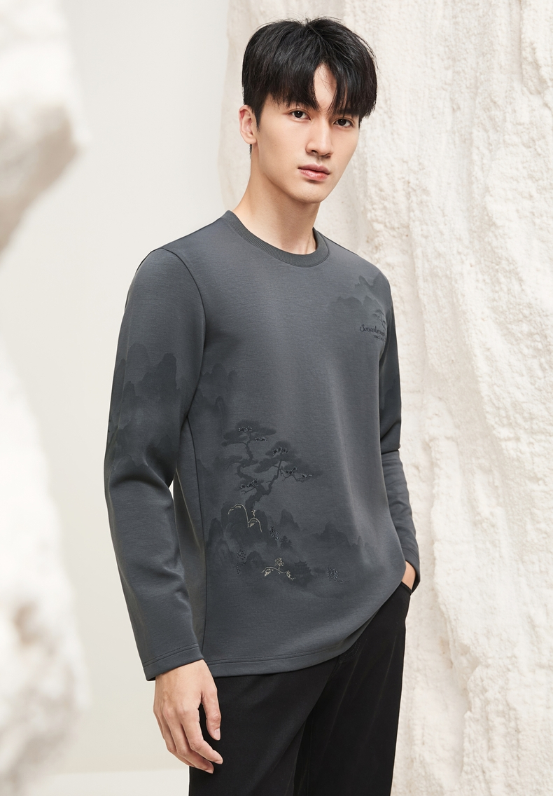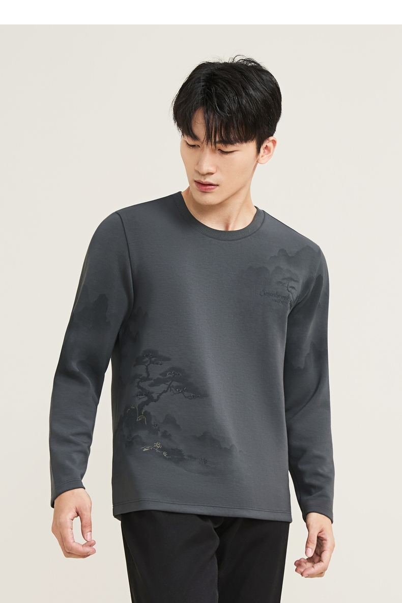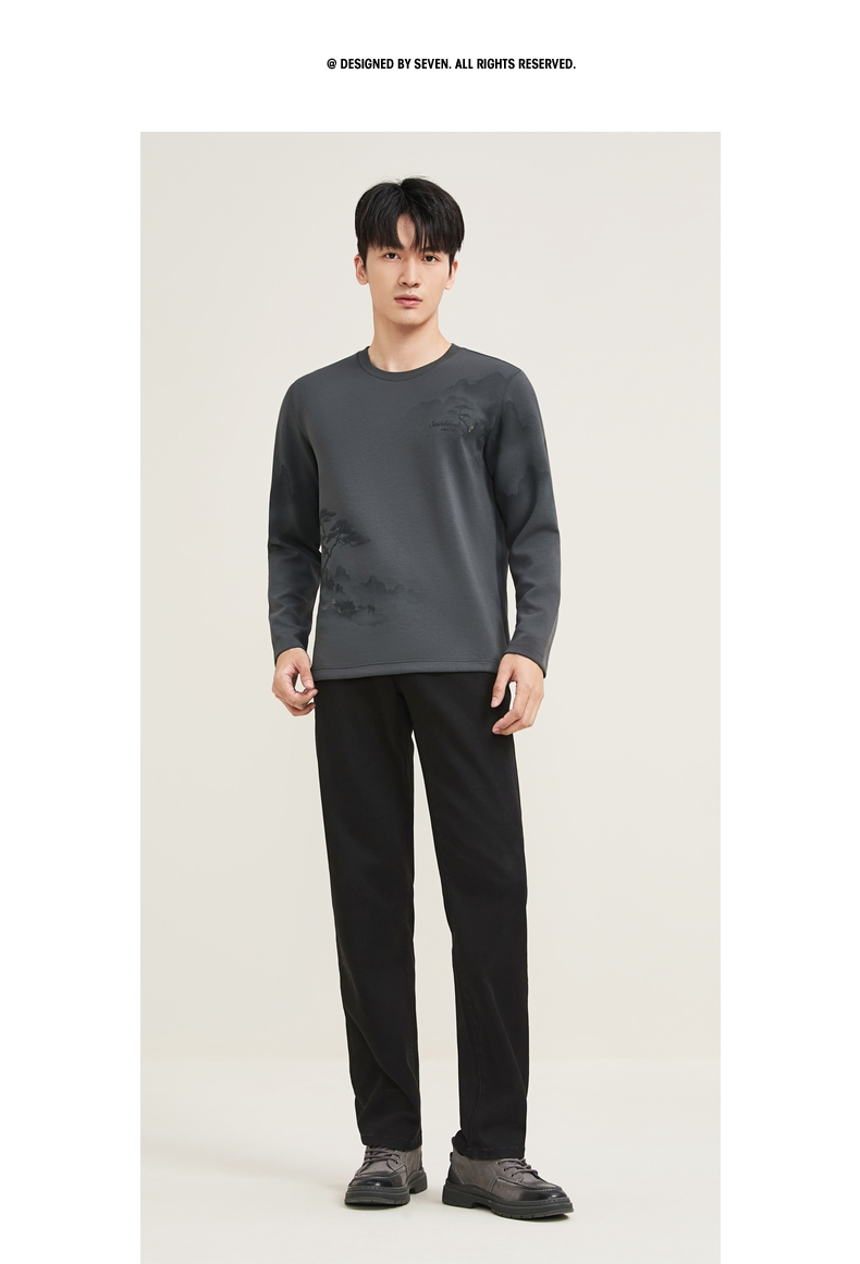 【国风印花T恤】柒牌长袖T恤男2025秋季新款莫代尔时尚圆领上衣129T70210