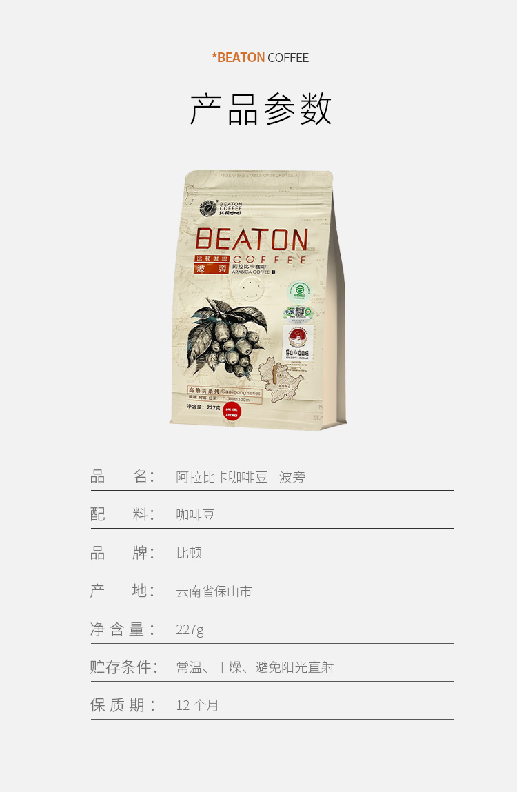 云南保山小粒咖啡 精选单品【波邦】227g/袋