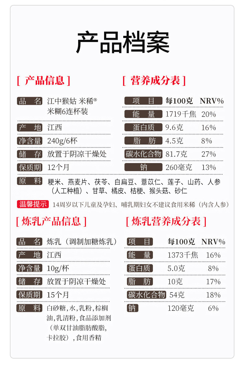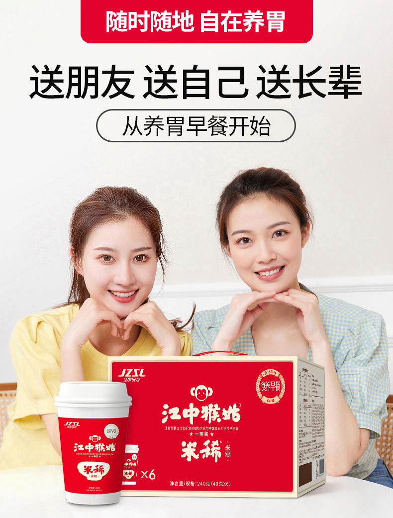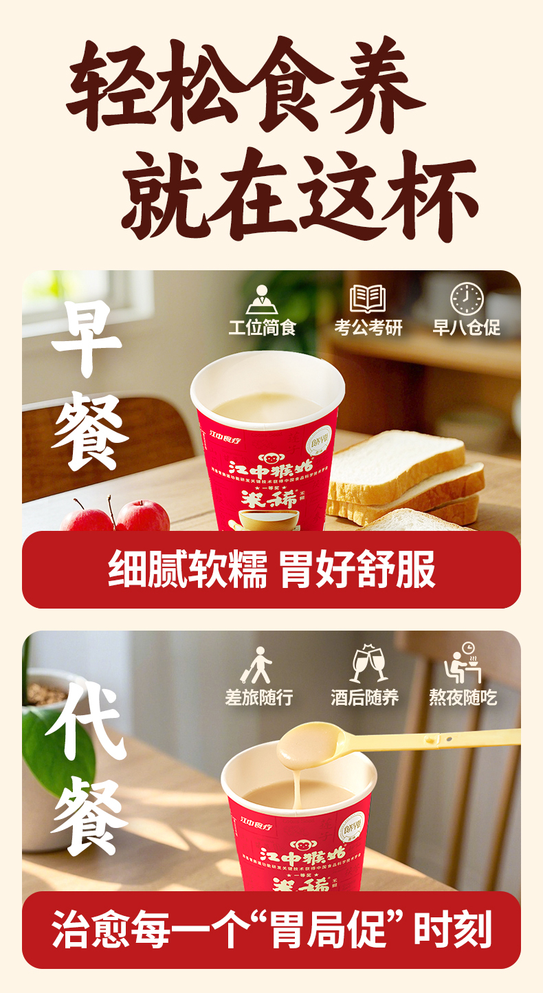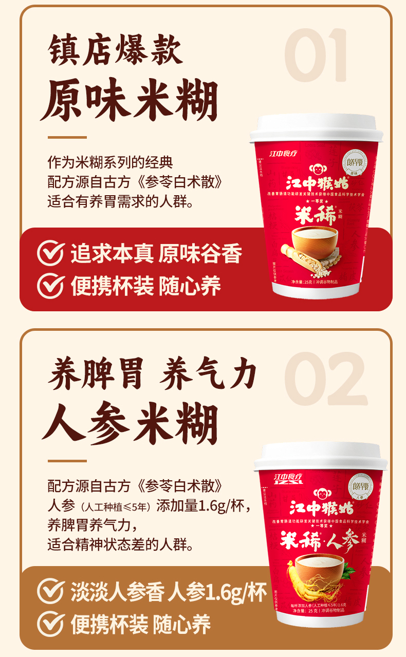 【便携早餐】江中猴姑米稀原味米糊 便携早餐代餐冲饮养胃米糊营养便携食疗 40g/杯&35g/杯可选