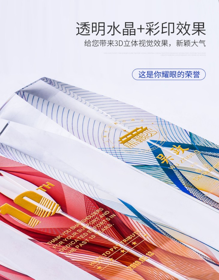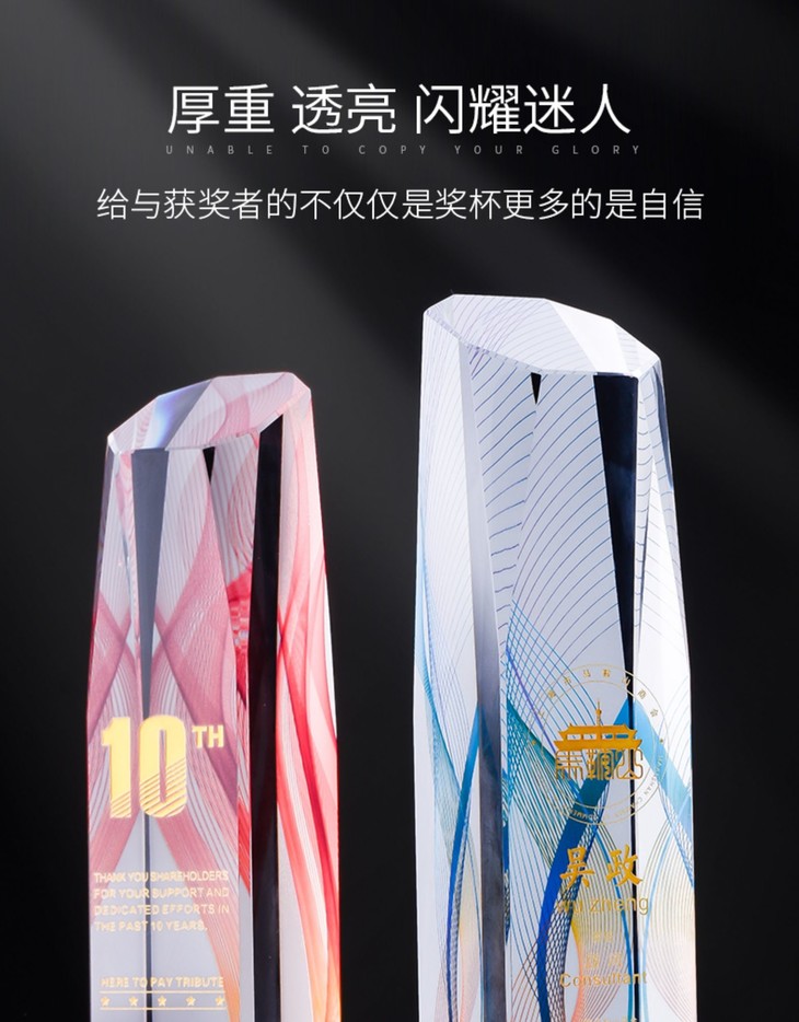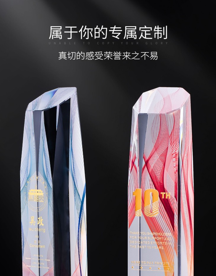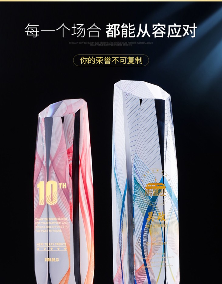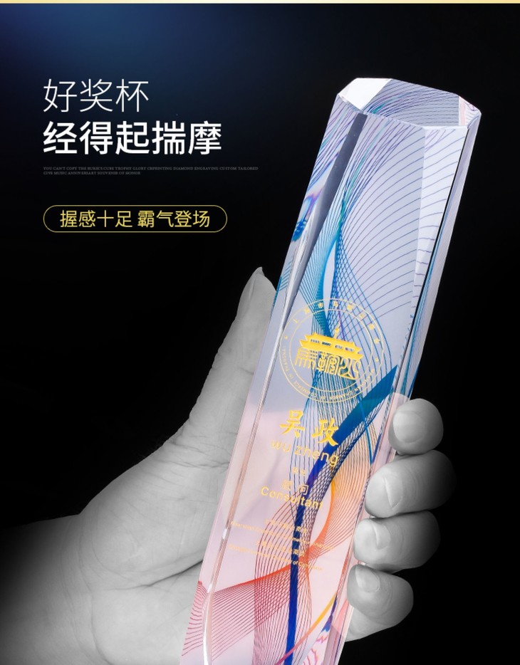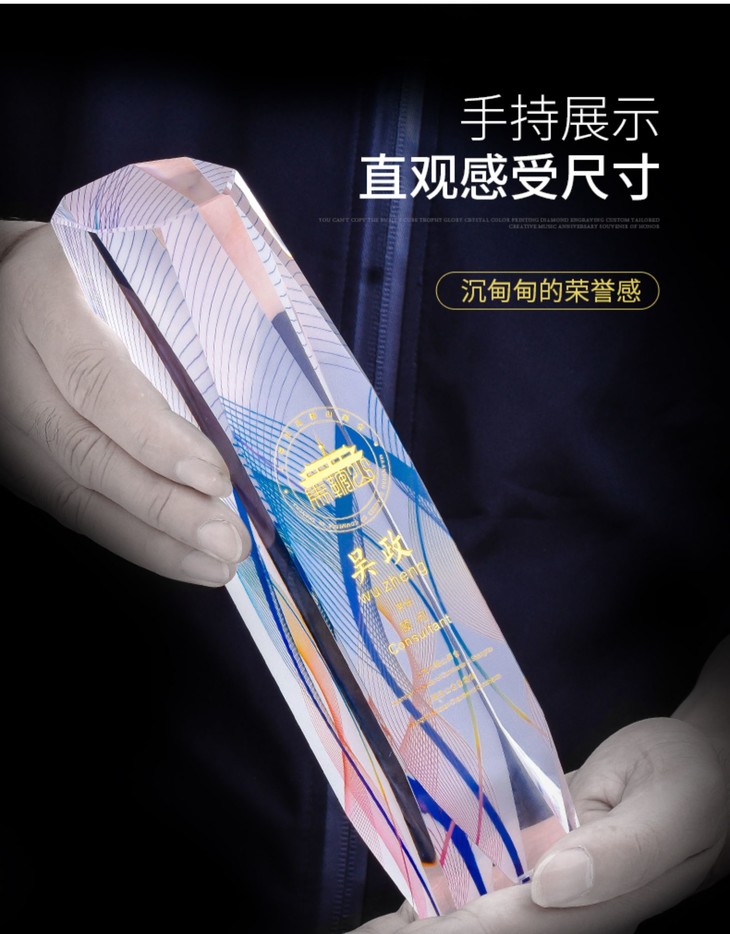 水晶奖杯定制彩色授权牌讲座年会企业优秀员工代理加盟做新款奖牌