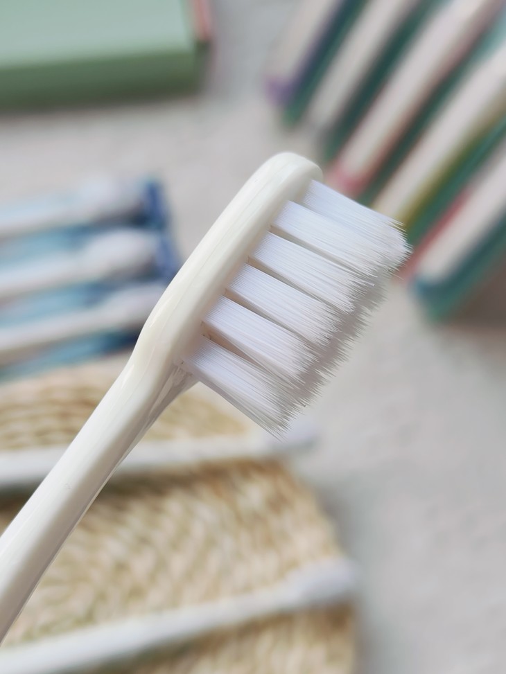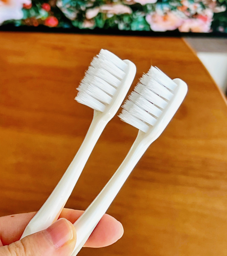 🔻市面上这么多的牙刷,应该要如何选择呢? 1️⃣刷毛柔软是必须的! 如果太硬非常容易导致牙齿颈部出现磨损沟 2️⃣刷头要小,刷头太大根本塞不进去 里面的牙齿牙面刷不到啊 3️⃣毛头经过处理,一般是磨圆处理