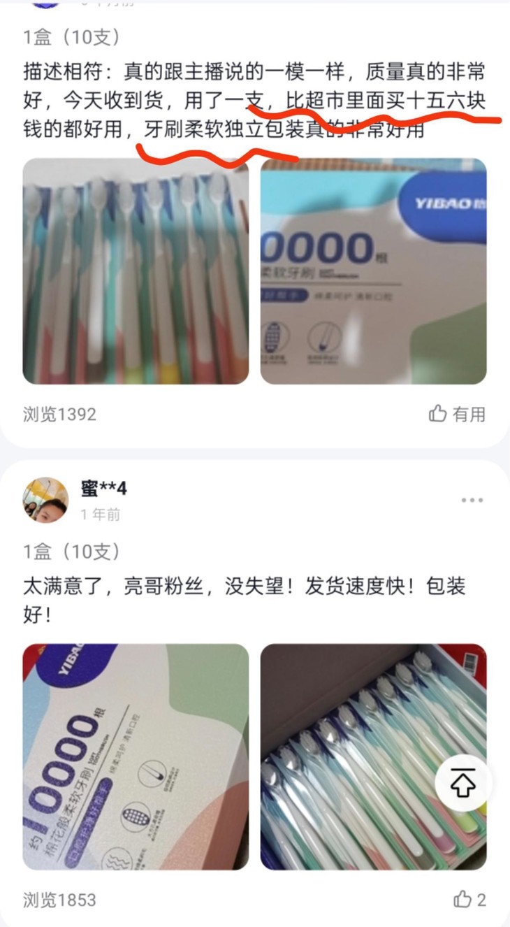 🔻下面是【怡宝万根牙刷】与其他品牌对比图 可以明显看出拥有10000根刷毛牙刷的刷毛密度 明显多于普通牙刷