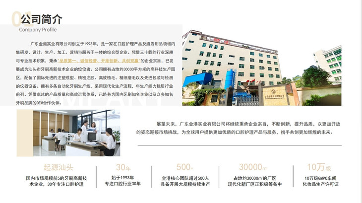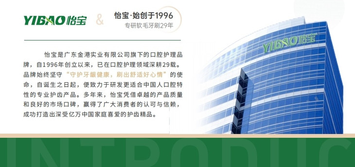🔻品牌介绍 怡宝是金港实业旗下的日化品牌之一,1993 成立,在牙刷制造领域深耕细作整整 30 年❗ 是一家集研发、设计、生产、加工、销售、服务 为一体的综合型企业 金港实业的业务涵盖口腔护理产品、酒店用品、 旅游用品及航空用品等多个领域 而牙刷作为其核心产品,更是做到了极致 拥有 25000 平米的综合型生产科技园区 年生产量在行业内名列前茅 是欧美、亚太、港澳台等三十多个国家和地区 以及国内多家著名日化企业信赖的日化工厂