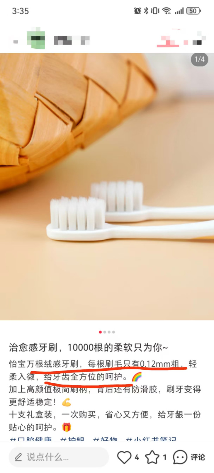 你的清晨还在与牙刷进行着一场无声的较量? 出门匆忙赶时间,却常常因为刷不干净而焦虑? 硬毛划过牙龈火辣刺痛,角落残渣堆积成牙菌斑...... 或许,你缺的是一把真正懂你口腔需求的牙刷 【怡宝YIBAO万根绒感牙刷】 ✅万根刷毛,柔软不伤牙,降低细菌滋生 ✅小圆弧宽头,大面积覆盖,不掉毛强力去污 ✅人体工学设计,防滑凸纹握柄 超软丨抗敏丨护龈丨净白丨深洁 牙垢、牙菌斑、黄牙、口臭,统统搞定