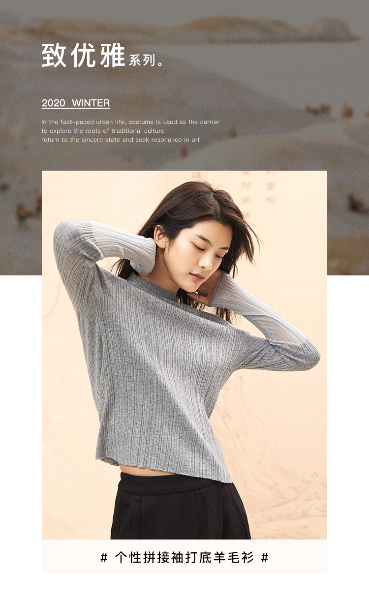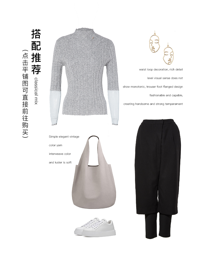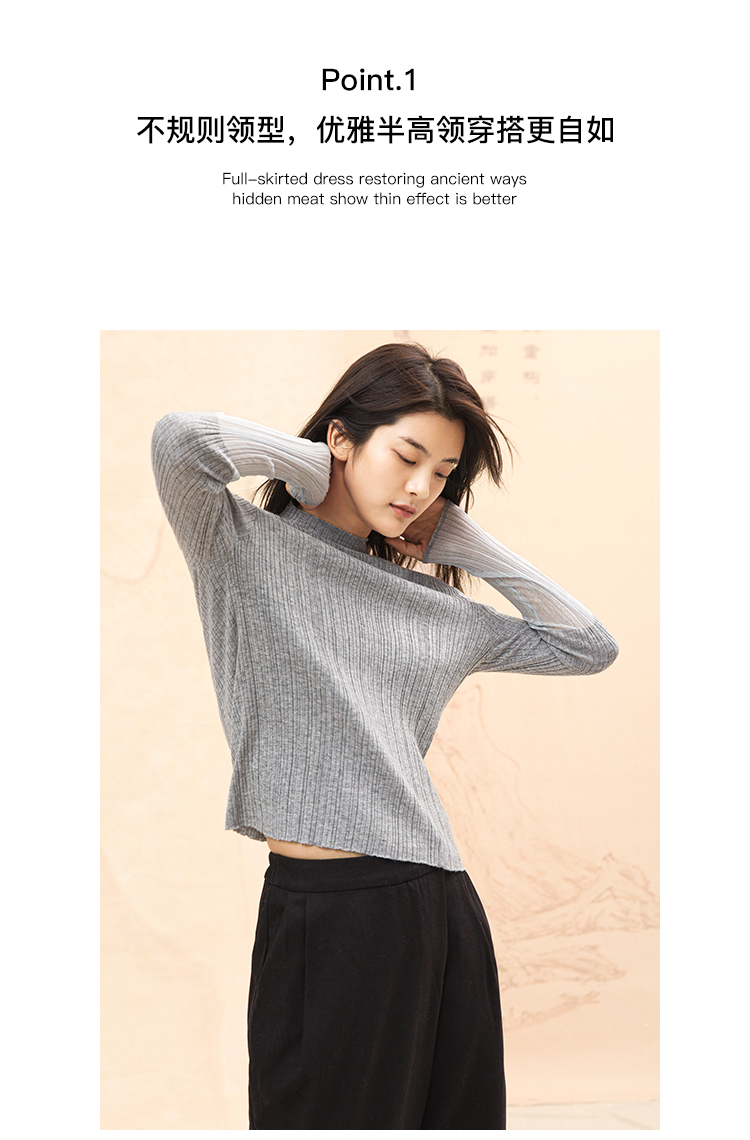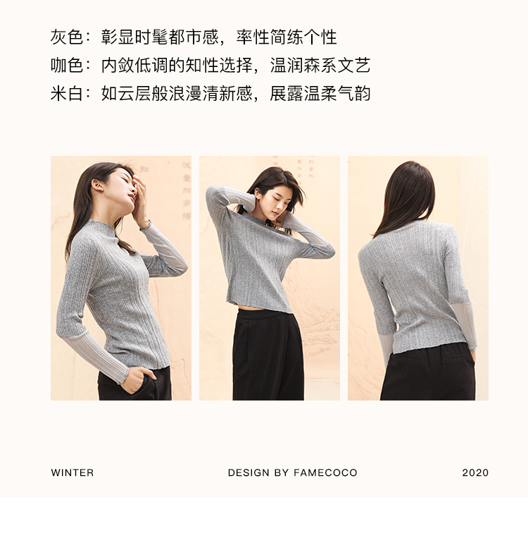 famecoco范可儿半高领打底衫女春内搭修身套头上衣F195DB013