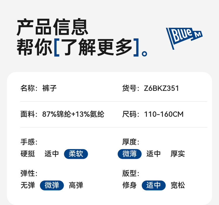 (合作款)【吸湿速干】Bluem中大童休闲裤yc0413019