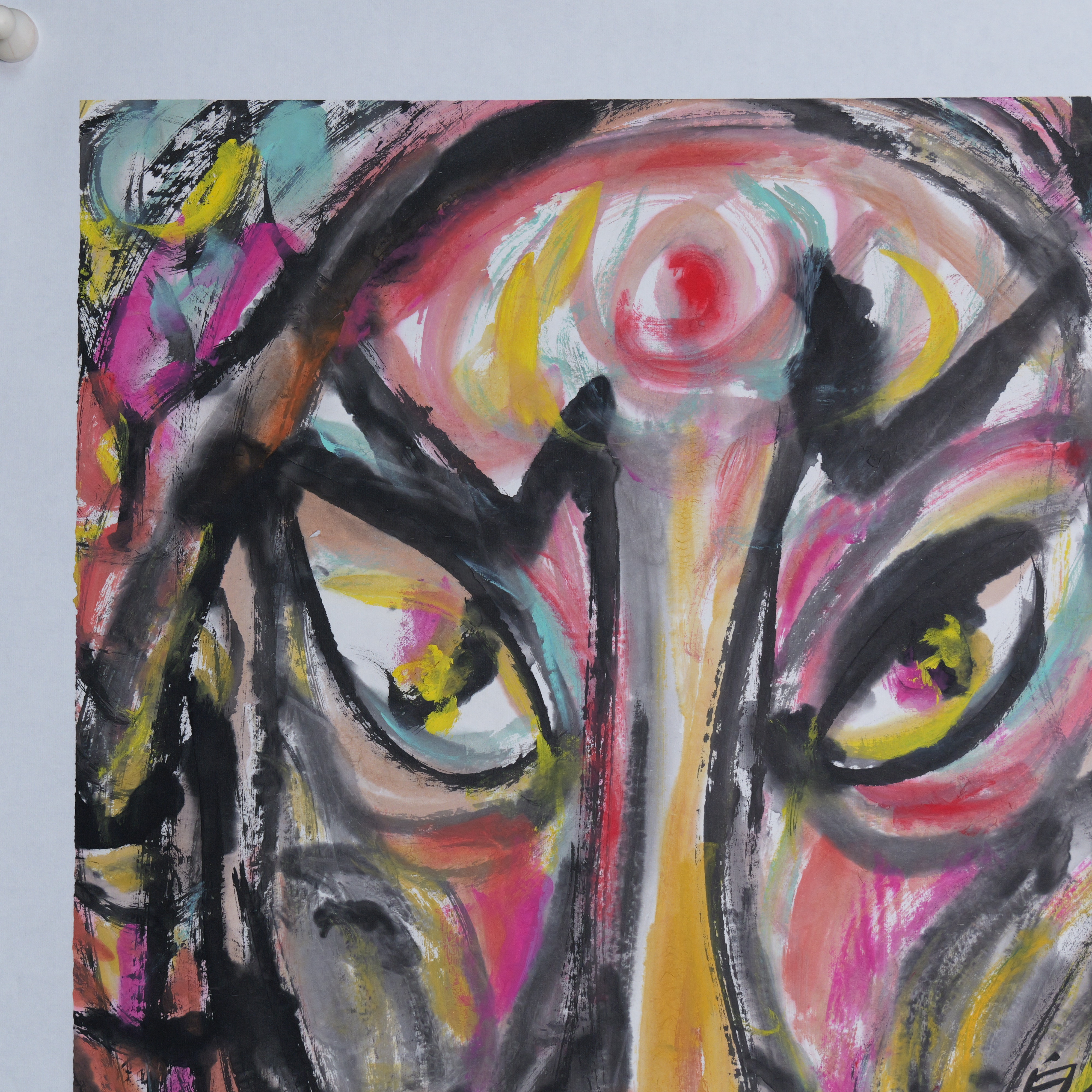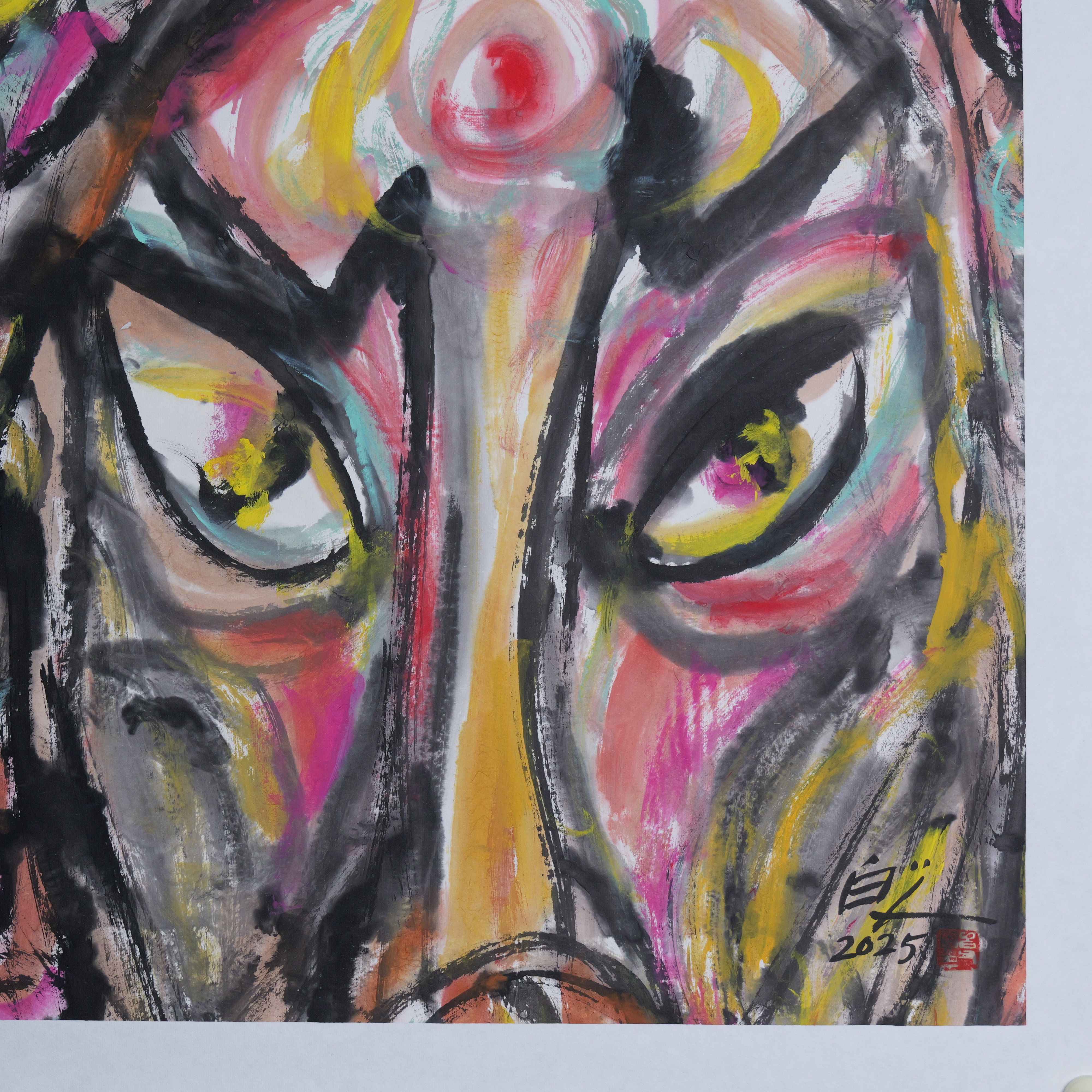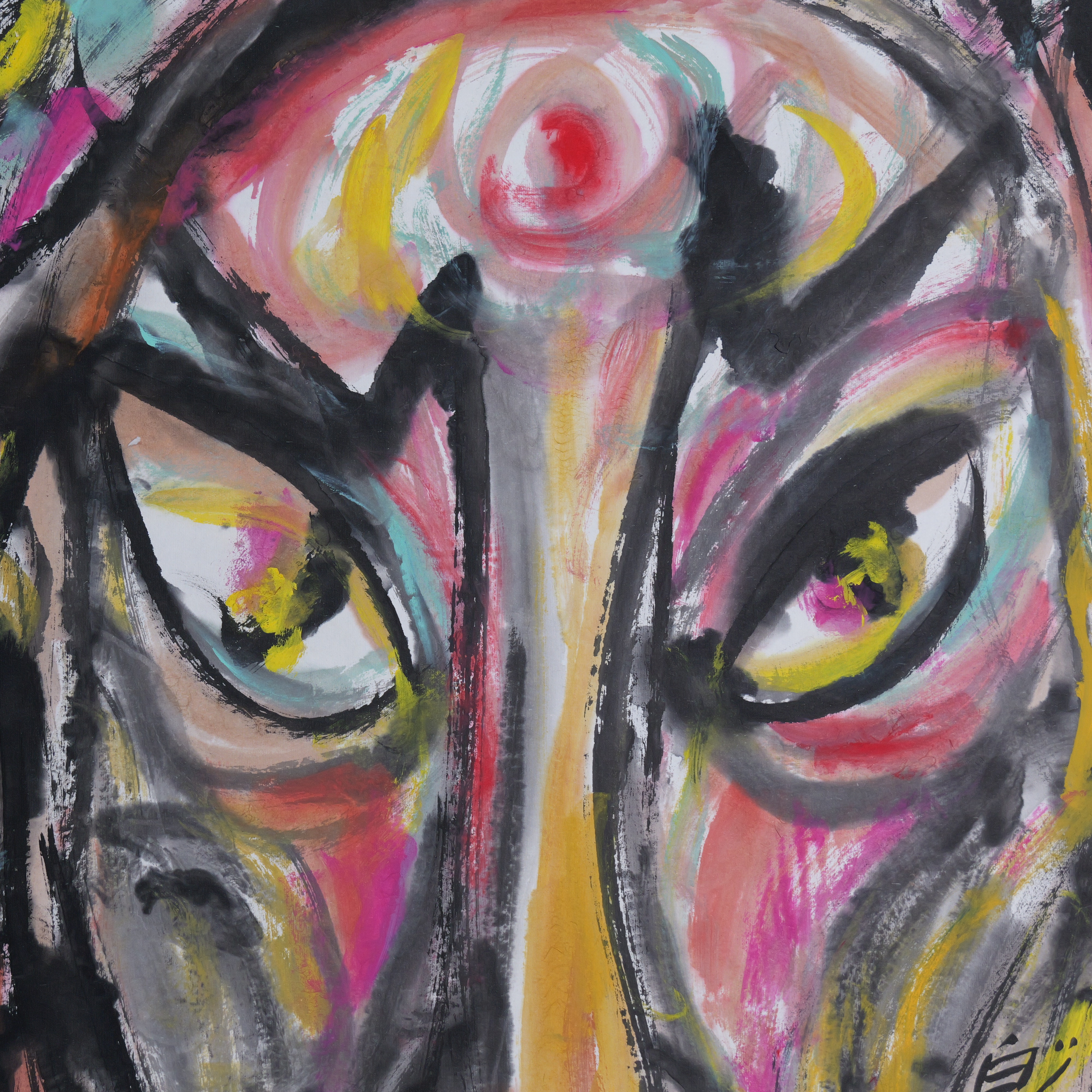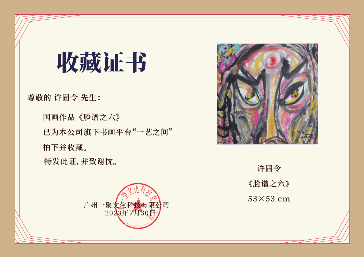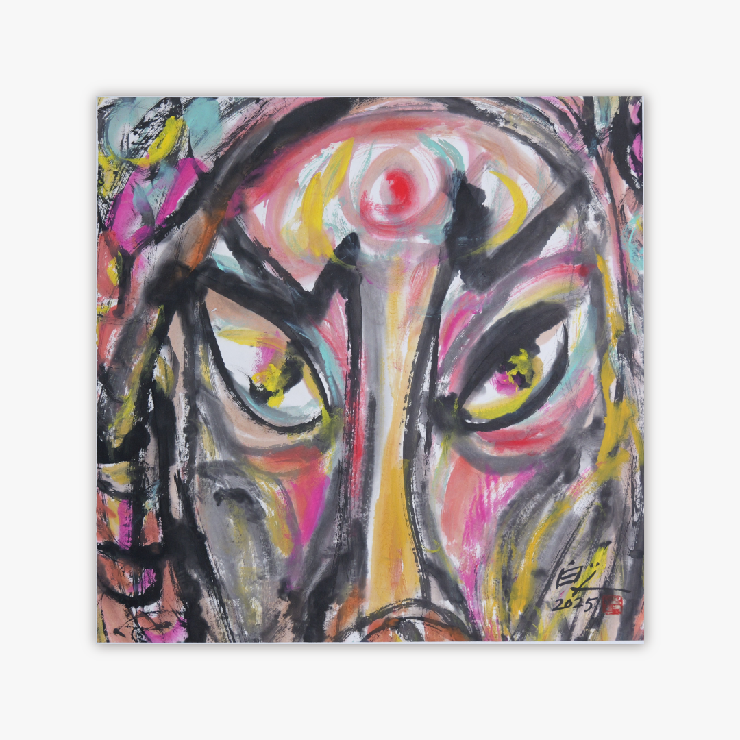 许固令《脸谱之十六》国画原作53CM*53CM 手绘宣纸脸谱系列斗方作品【GH0495】