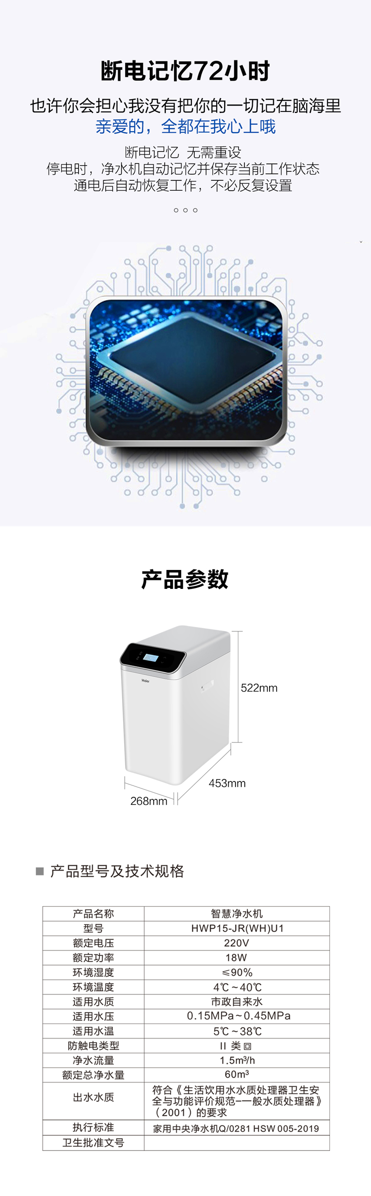 海尔(Haier)中央净水机 HWP15-JR(WH)U1