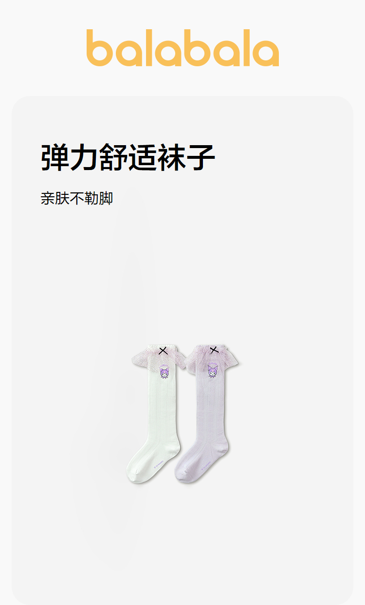 【三丽鸥IP商场同款】巴拉巴拉女童袜子夏网眼袜透气中筒袜两双装