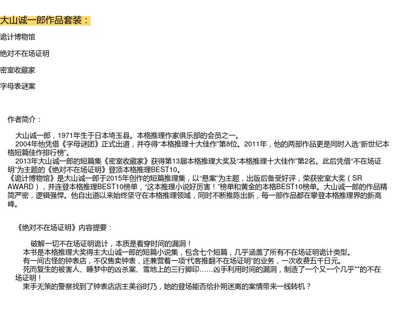 大山诚一郎作品套装共4册 字母表谜案+诡计博物馆+绝对不在场证明+密室收藏家 日本悬疑推理小说