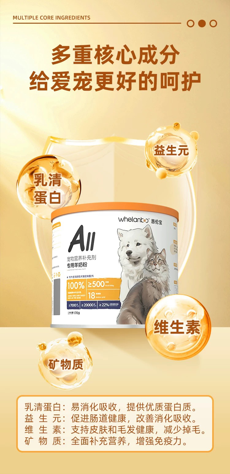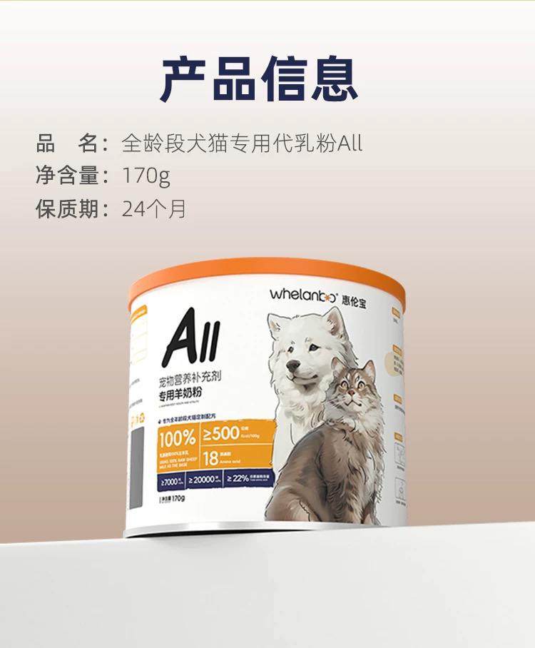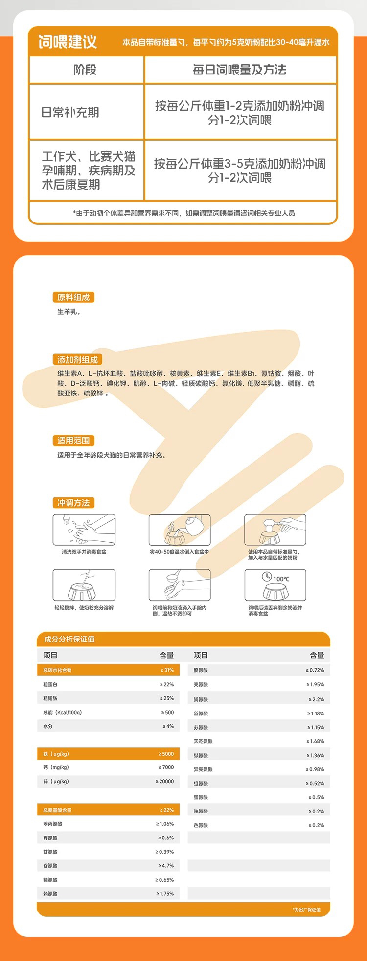 惠伦宝羊奶粉犬猫通用0蔗糖全阶段适用 营养补充