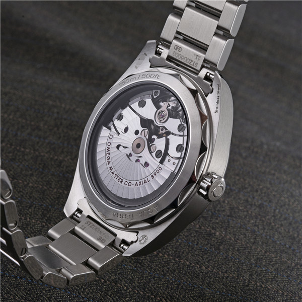 镜面材质 | 蓝宝石水晶玻璃 | 表盘 | 精钢表壳 水平“柚木”纹理令银色表盘尽显与众不同,设计灵感源自豪华游艇上的柚木甲板。6点钟位置亦设有日历窗口,蓝色指针和小时刻度覆以白色Super-LumiNova夜光涂层。中央秒针涂覆蓝色,分钟圈上“Seamaster”字样和四个刻钟数字也均由蓝色呈现。 日期显示 防磁 精钢旋入式表冠 透底 |