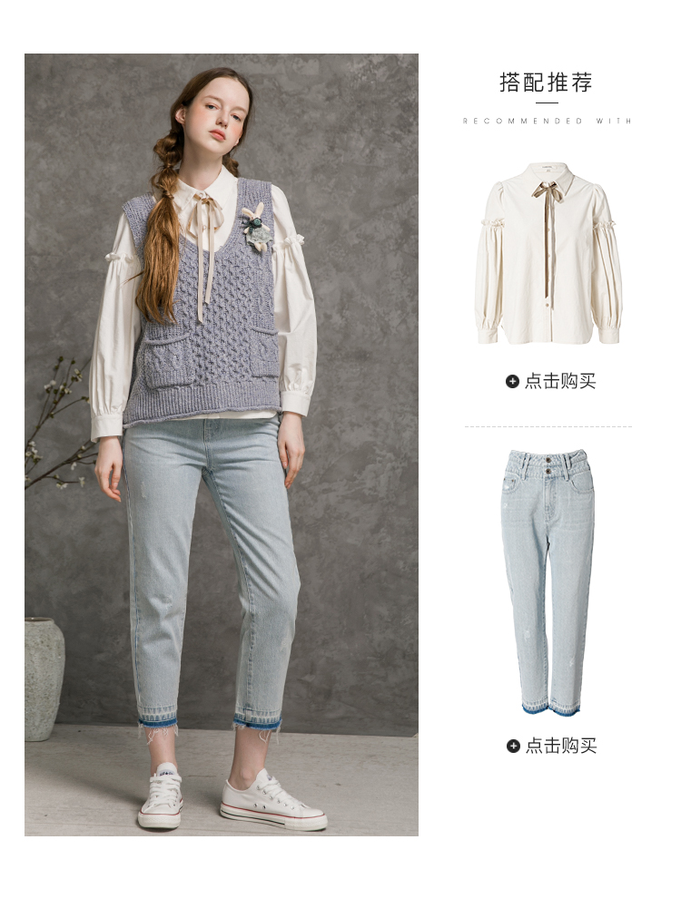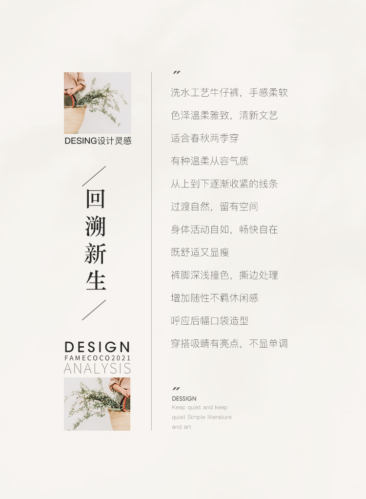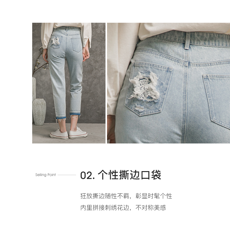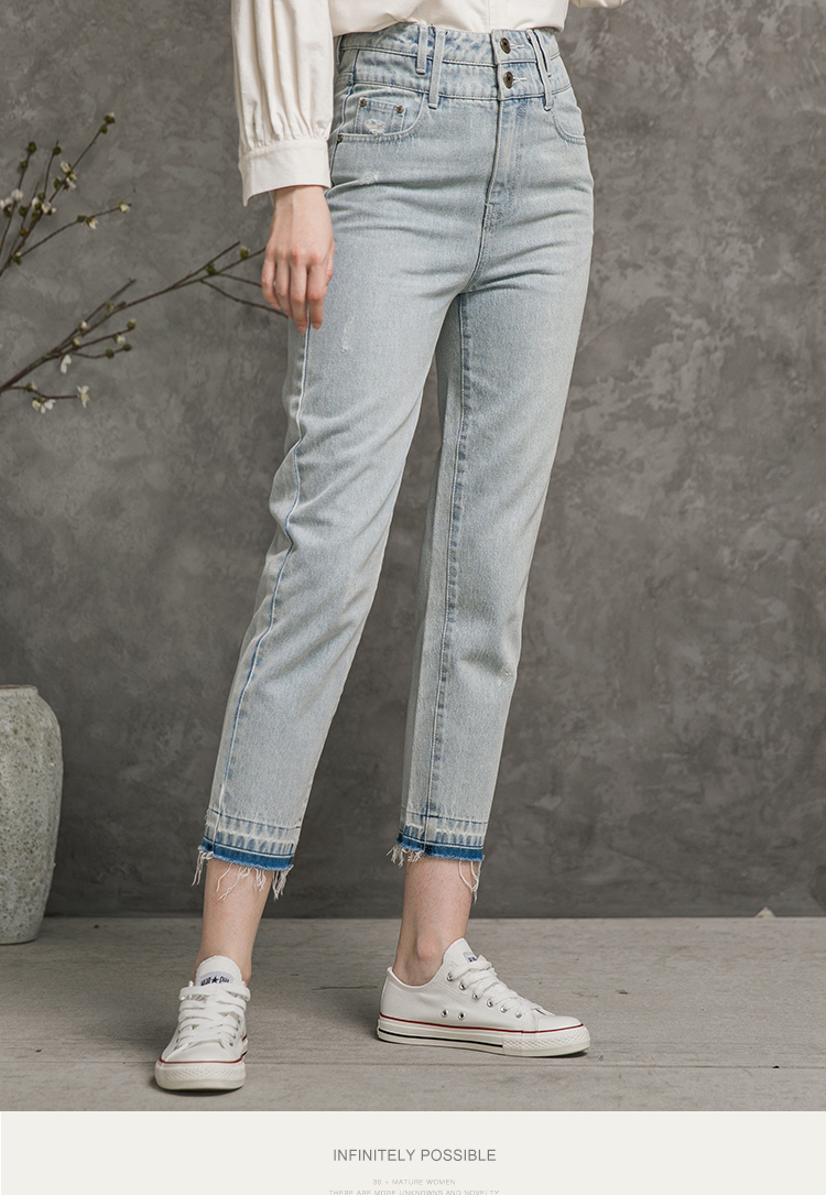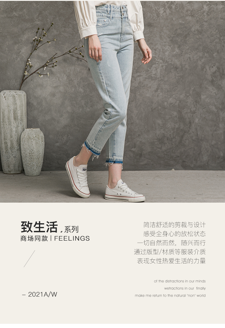 Famecoco范可儿全棉牛仔裤女秋浅色设计感裤子F216GA010
