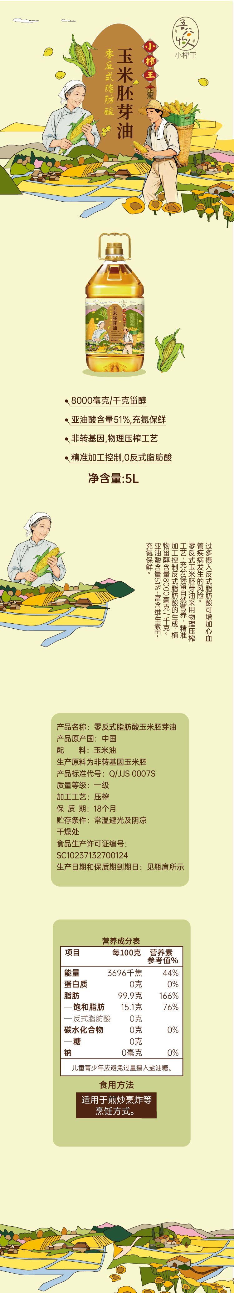 吾谷怡人小榨王零反式玉米胚芽油5L