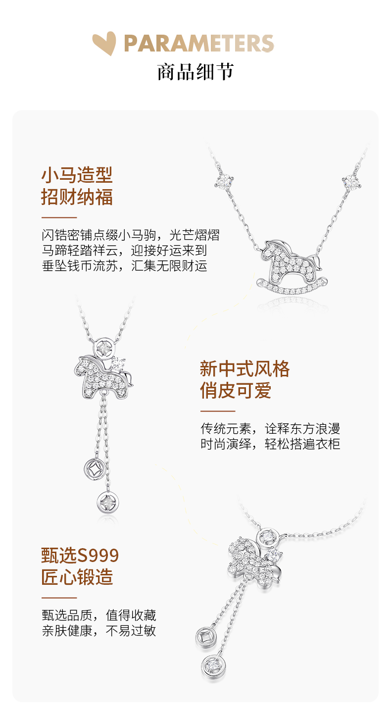 【新年限定】 卡蒂罗KADER 马上有钱项链/幸运钱币小马项链 925银/足银999生肖本命年闪耀吸睛吊坠马上来财转运锁骨链 百搭通勤时尚设计