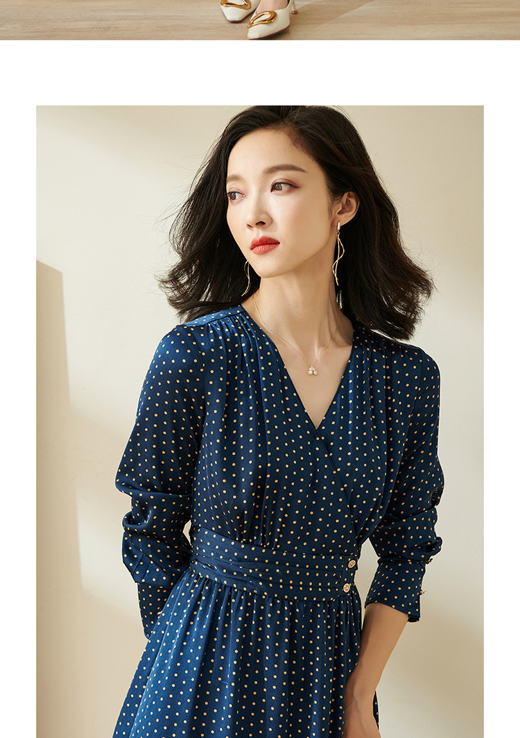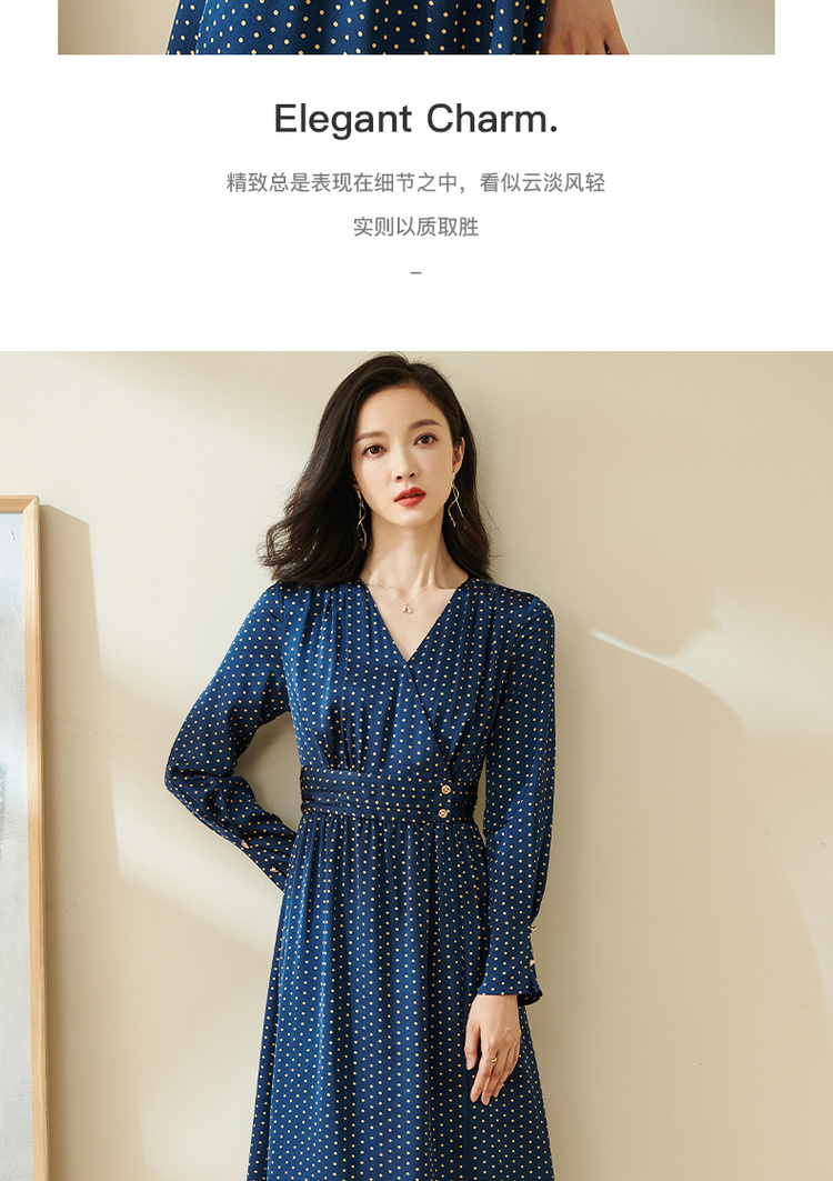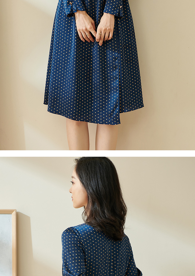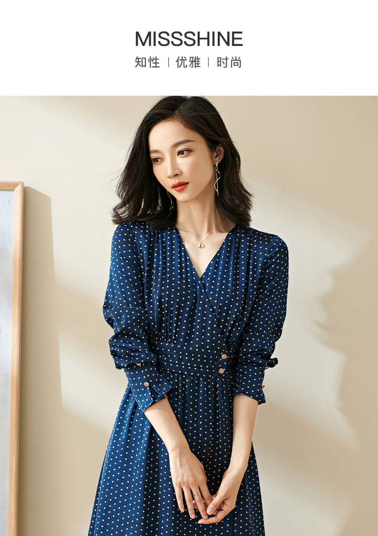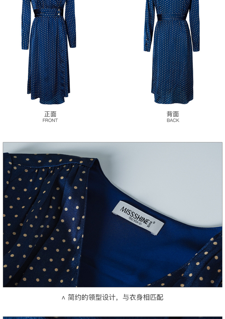 剩S 米思阳今年流行的裙子秋优雅小众初恋收腰飘逸蓝色波点连衣裙1712