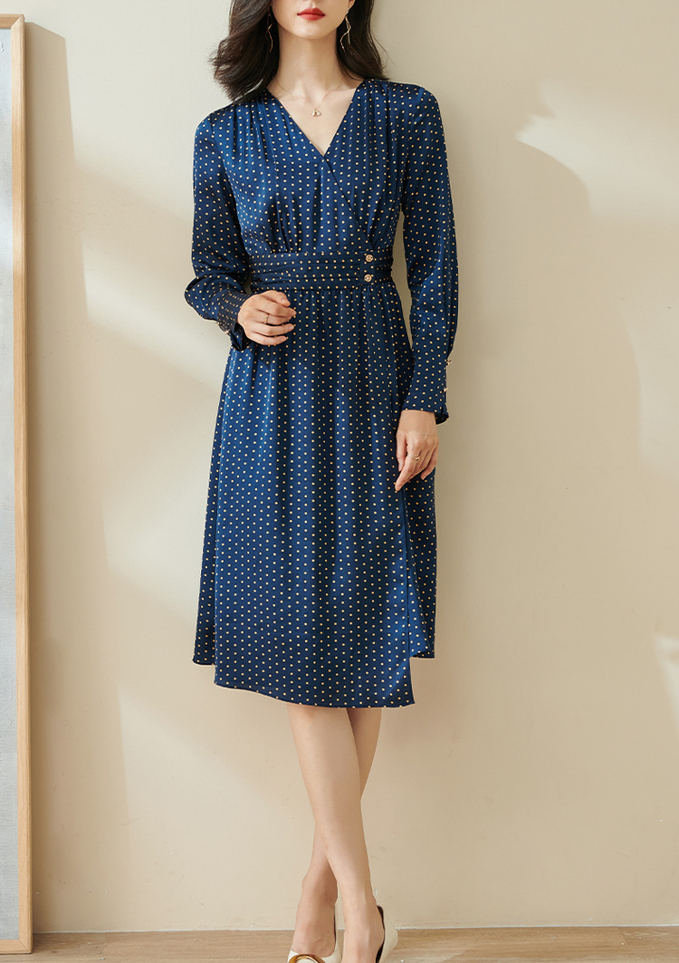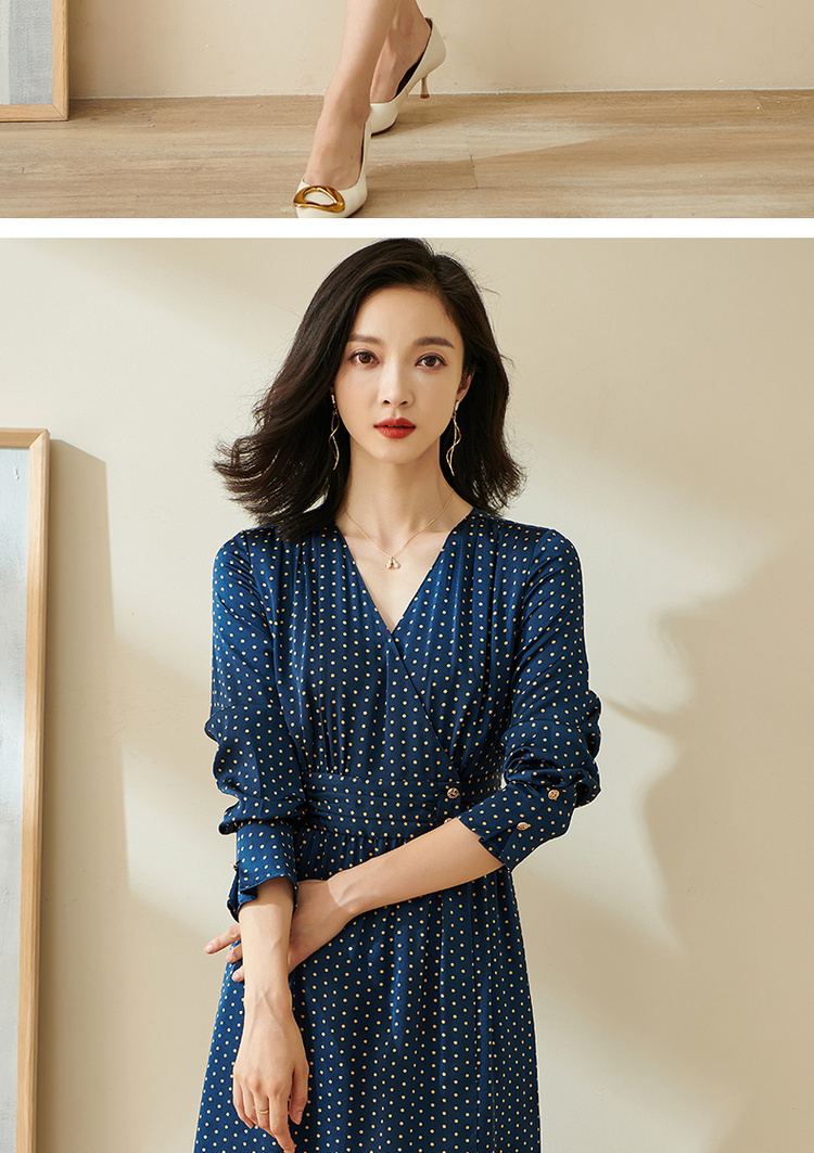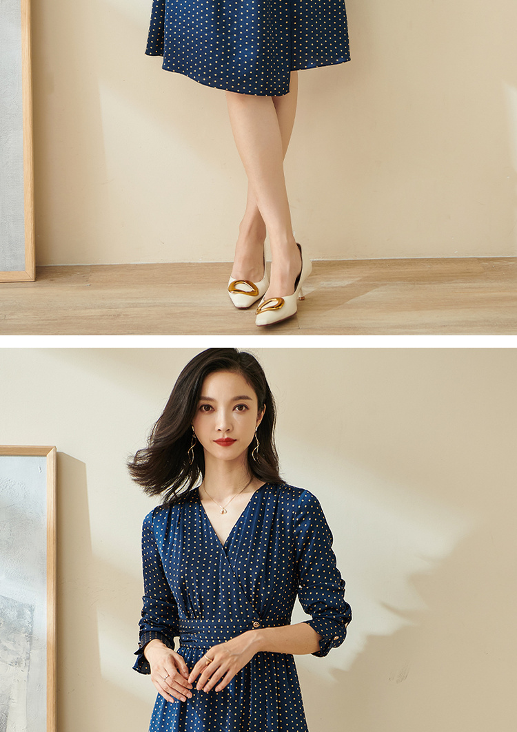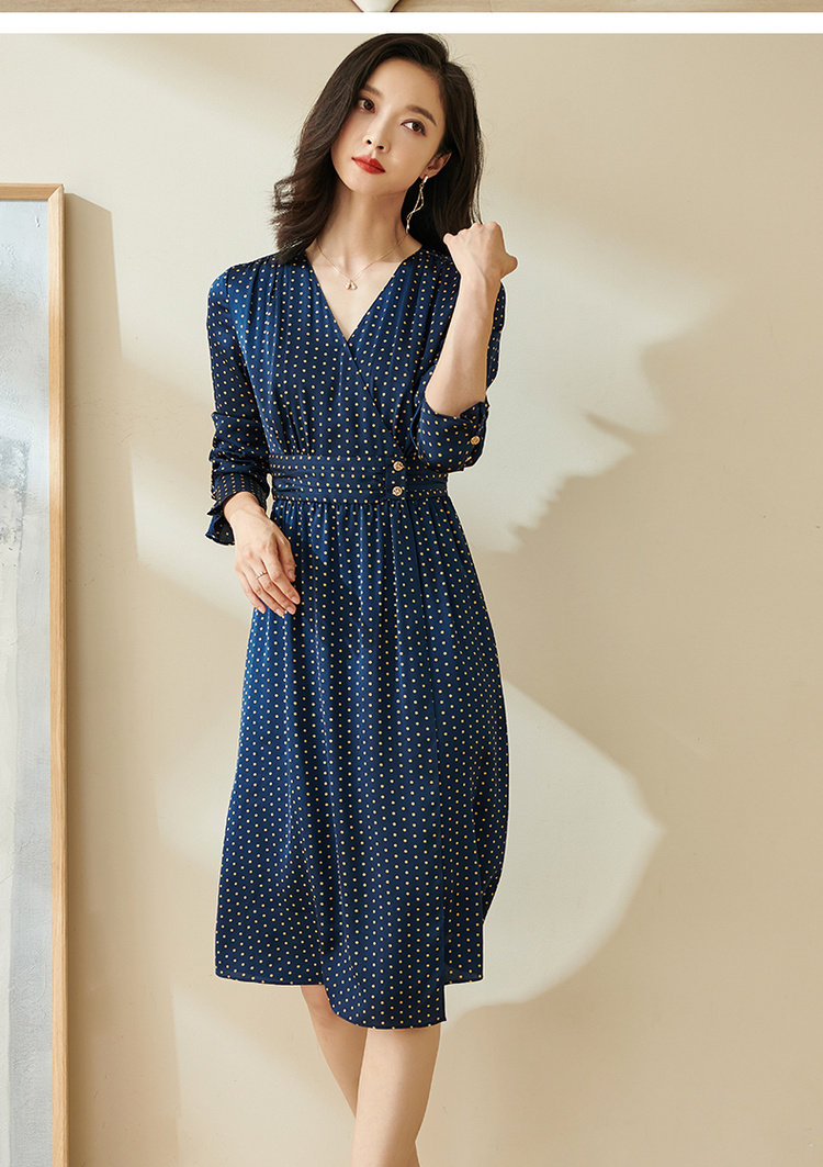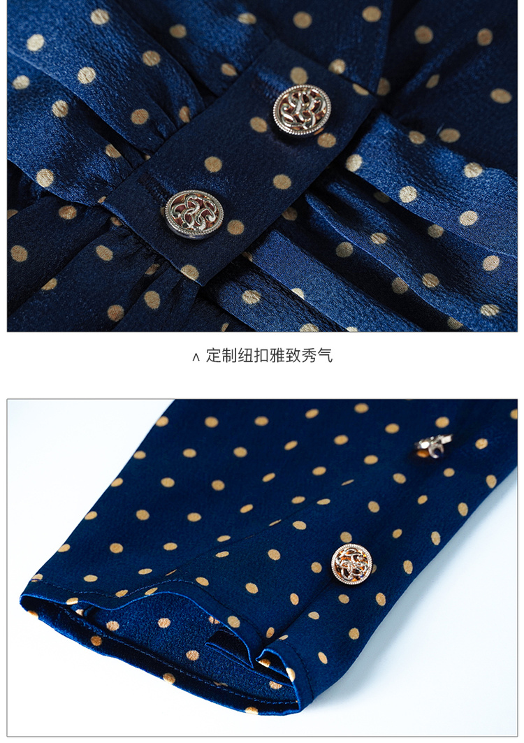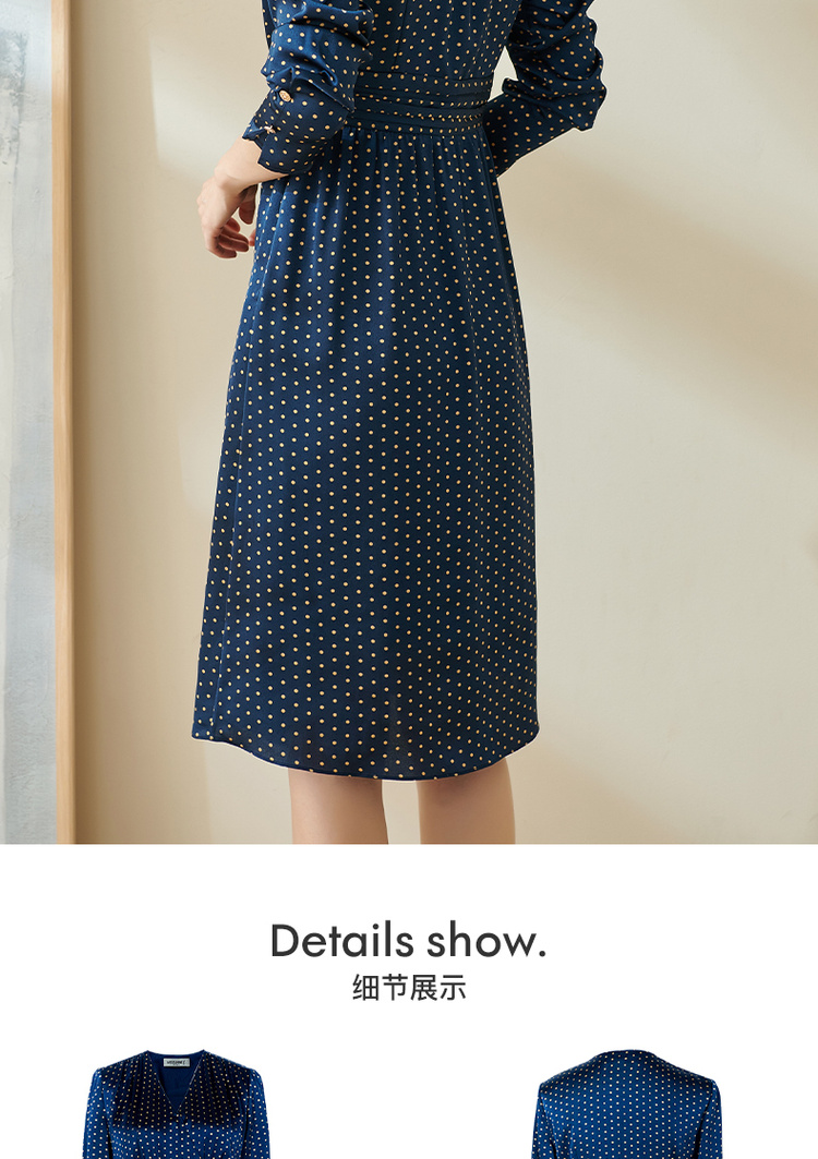 剩S 米思阳今年流行的裙子秋优雅小众初恋收腰飘逸蓝色波点连衣裙1712