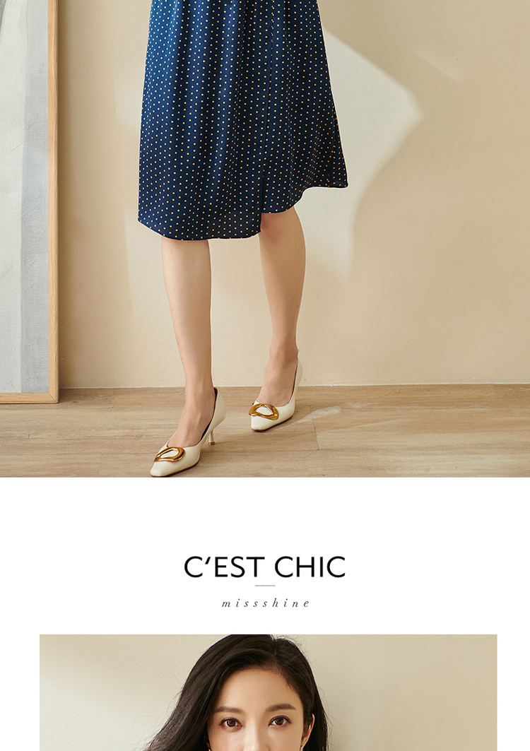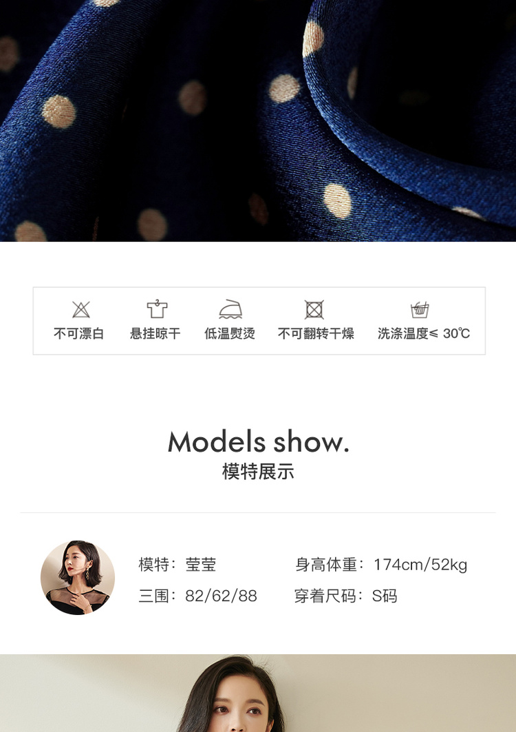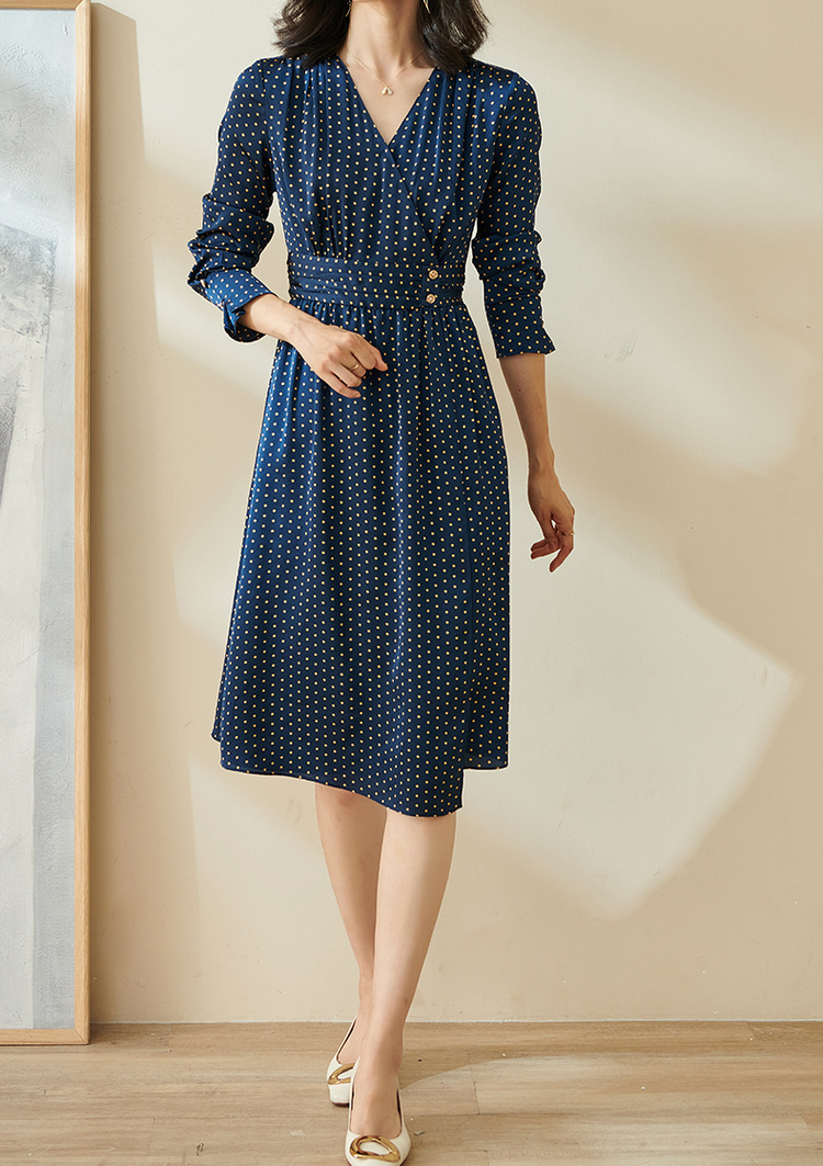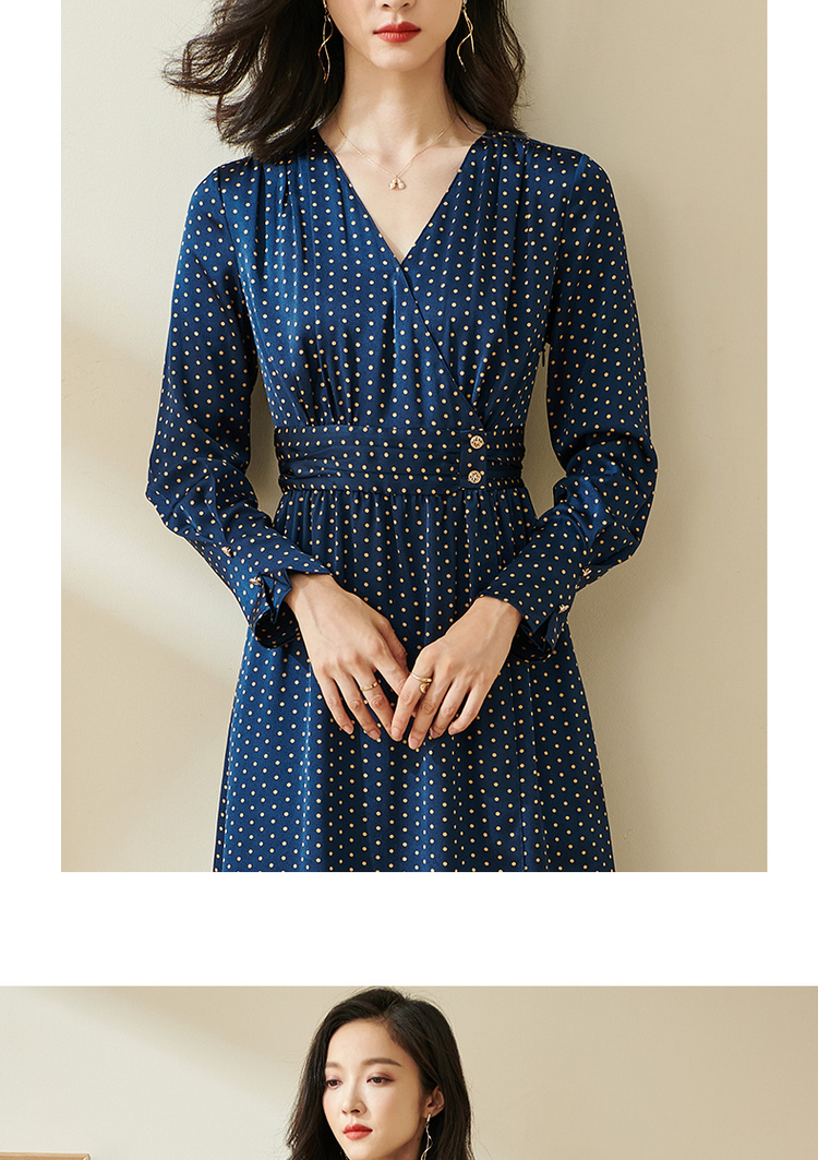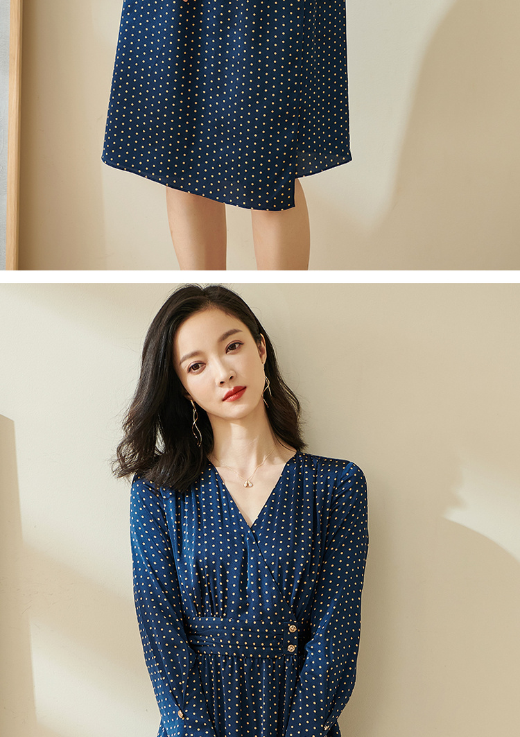 剩S 米思阳今年流行的裙子秋优雅小众初恋收腰飘逸蓝色波点连衣裙1712