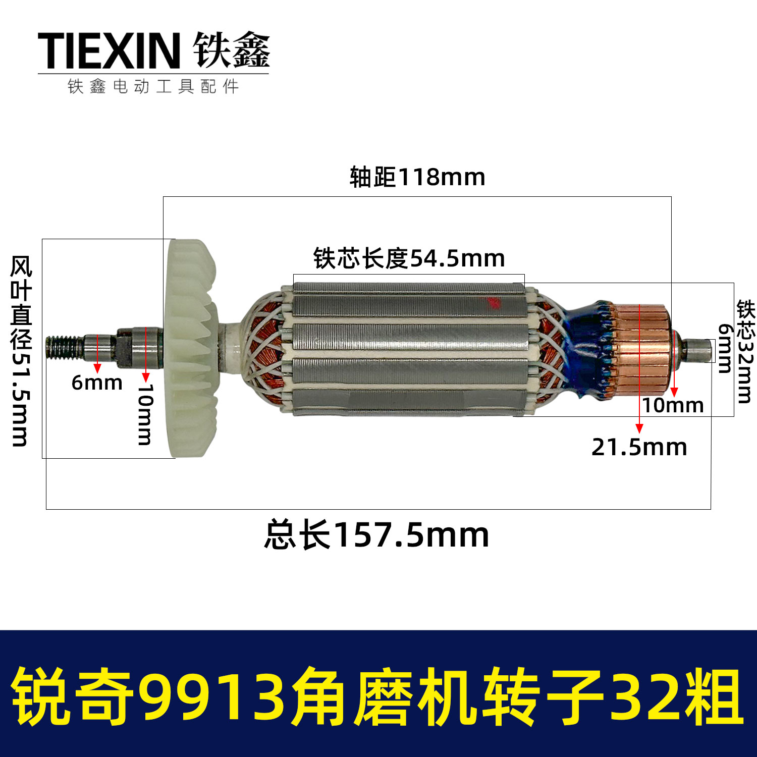 【货号02244】 锐奇9913角磨机转子32粗角磨机电机全铜角磨机电机