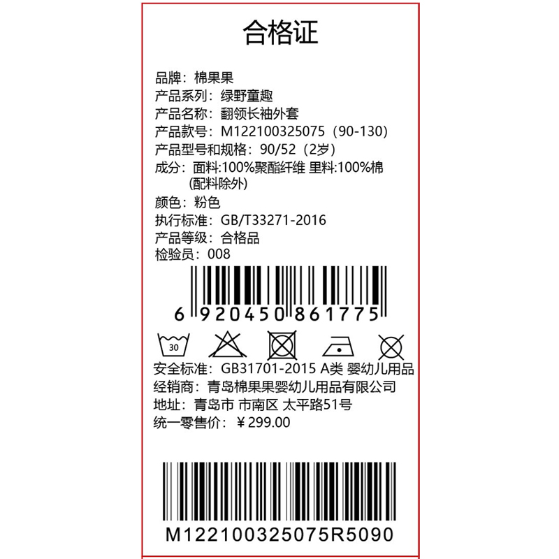 | 袖长(后中量) | 45 | 49 | 53 | 57.5 | 62 |