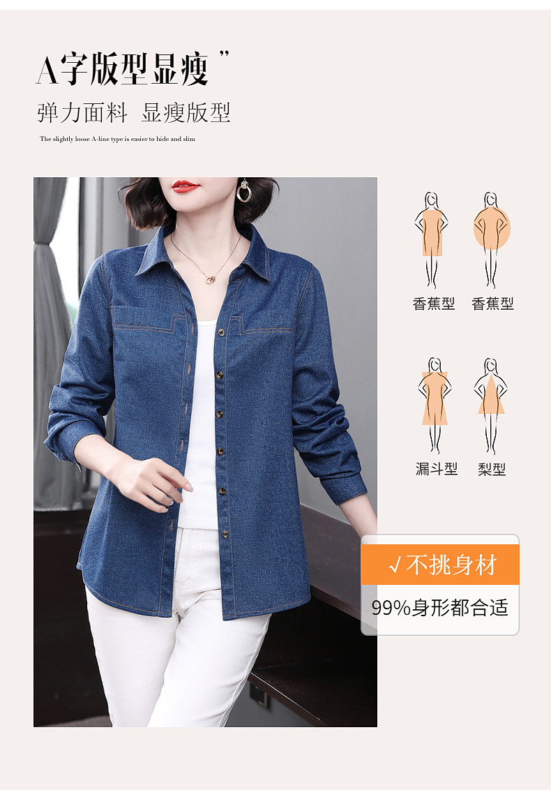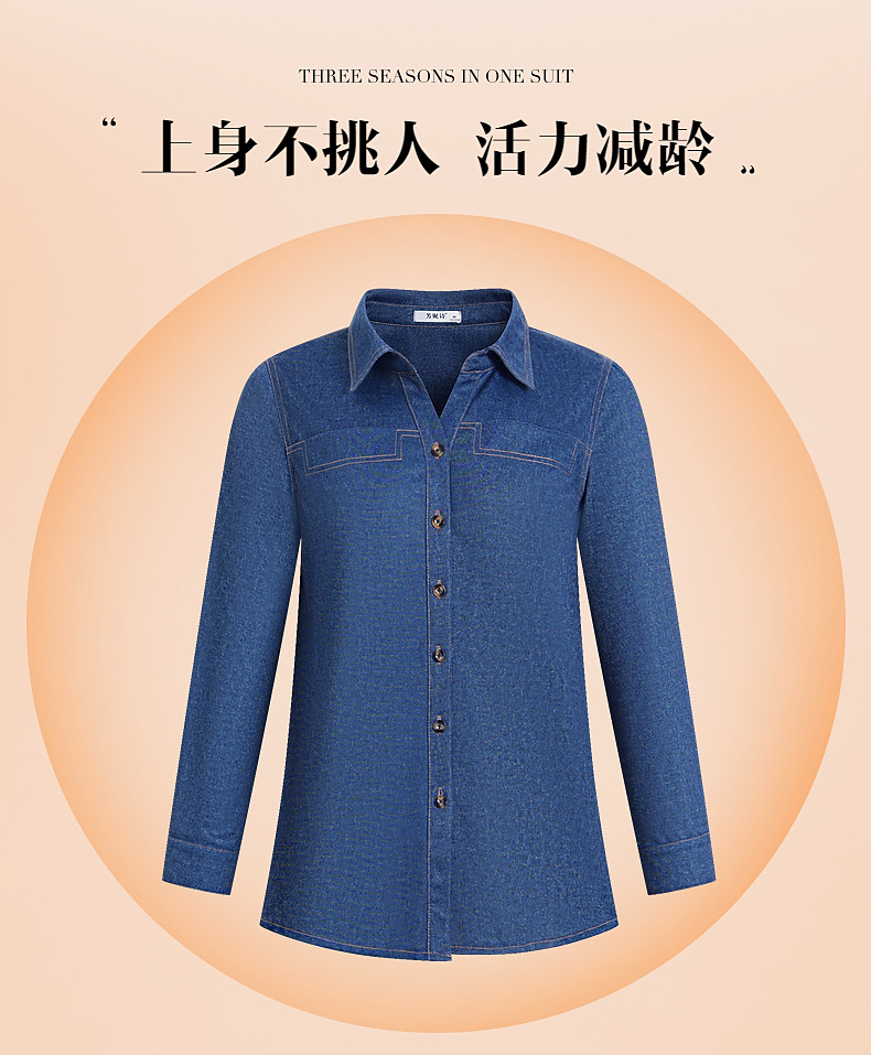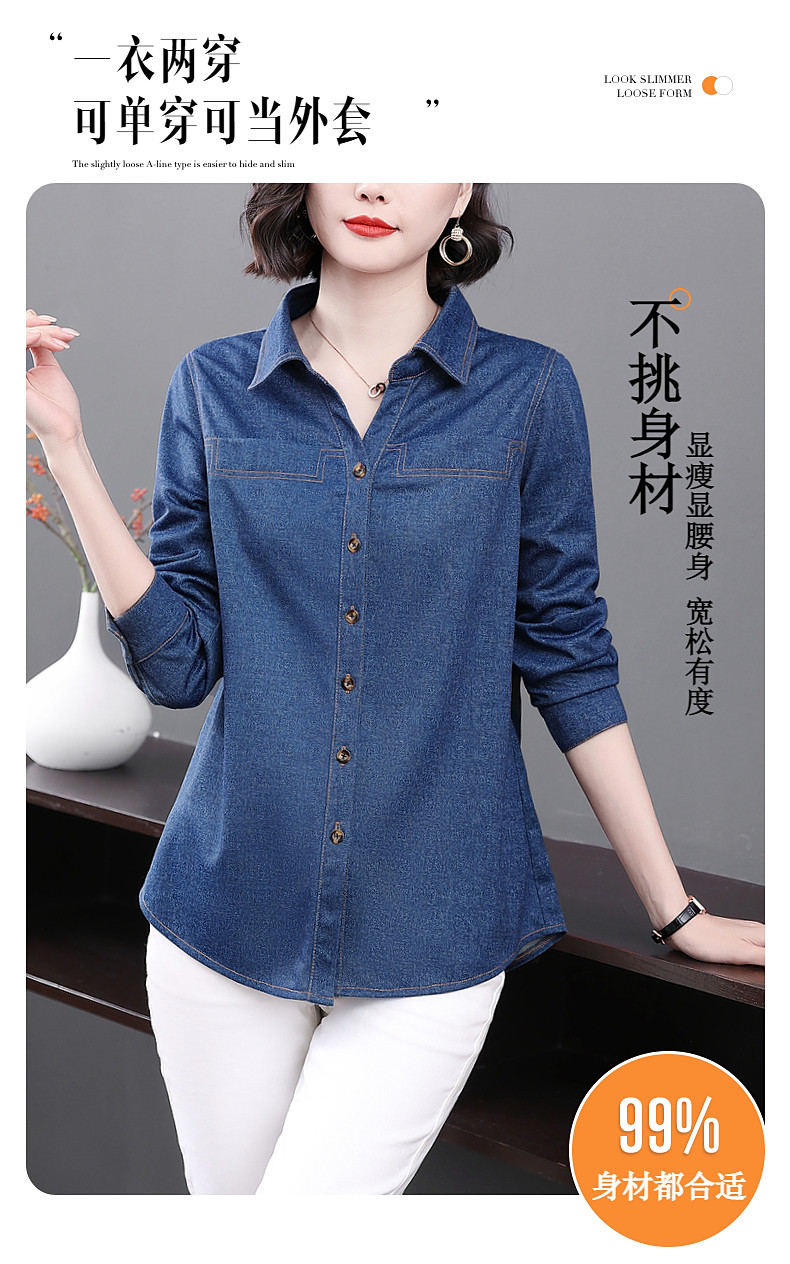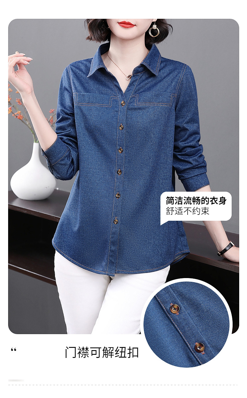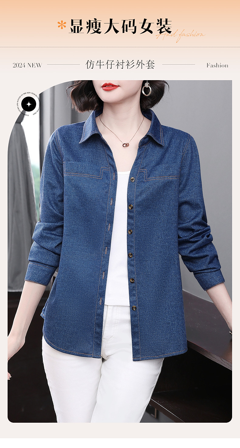 大码牛仔衬衫女2026年春秋新款女装中年妈妈外套女士衬衣长袖上衣