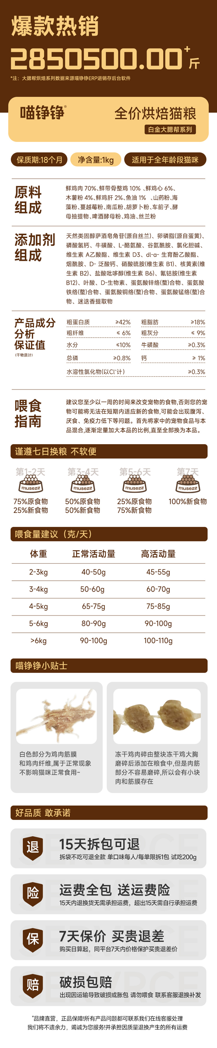 喵铮铮白金大腮帮烘焙猫粮 2斤/包 猫咪鲜肉营养主粮