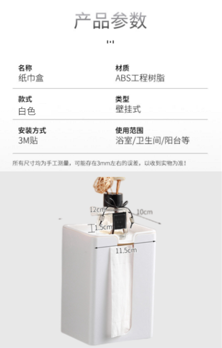 免打孔挂壁式抽纸盒 厨房家用免打孔纸抽盒卫生间3.43