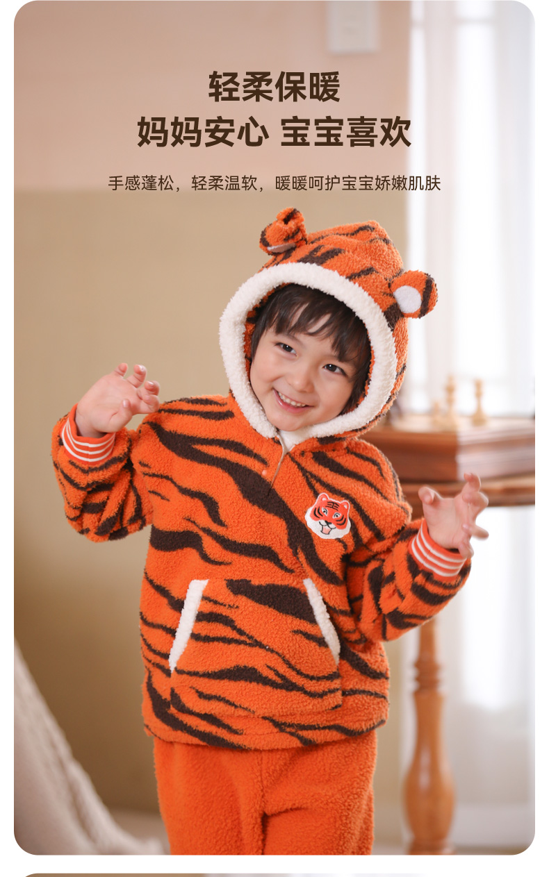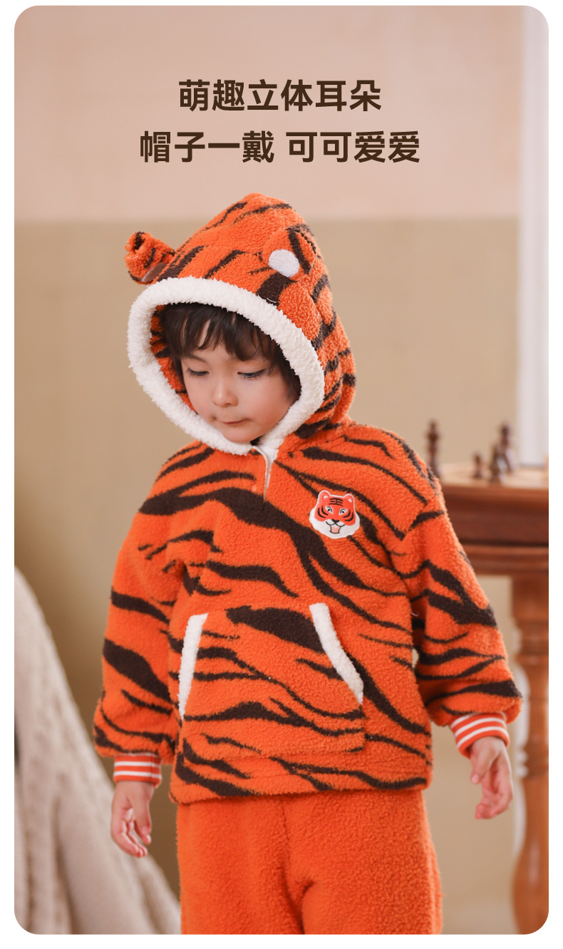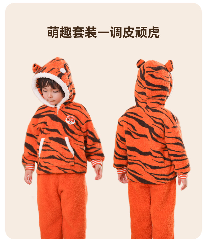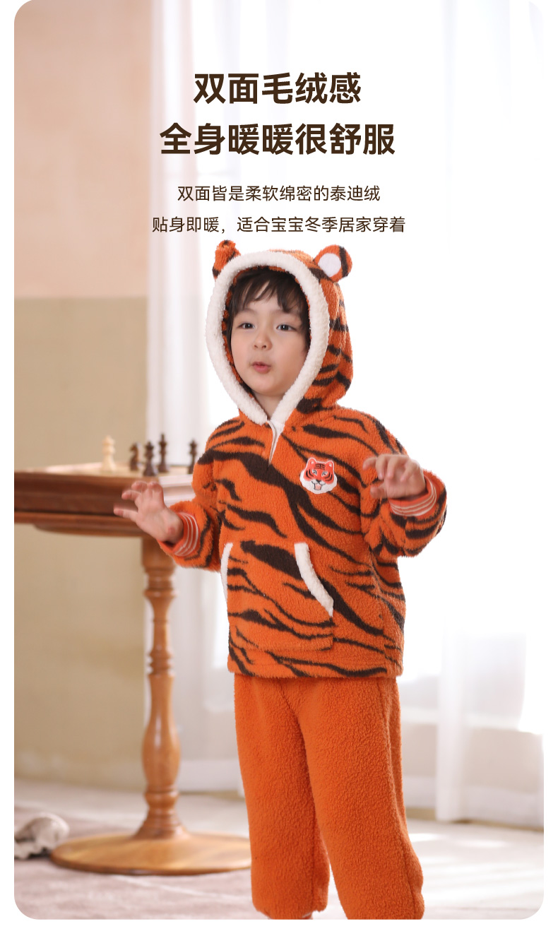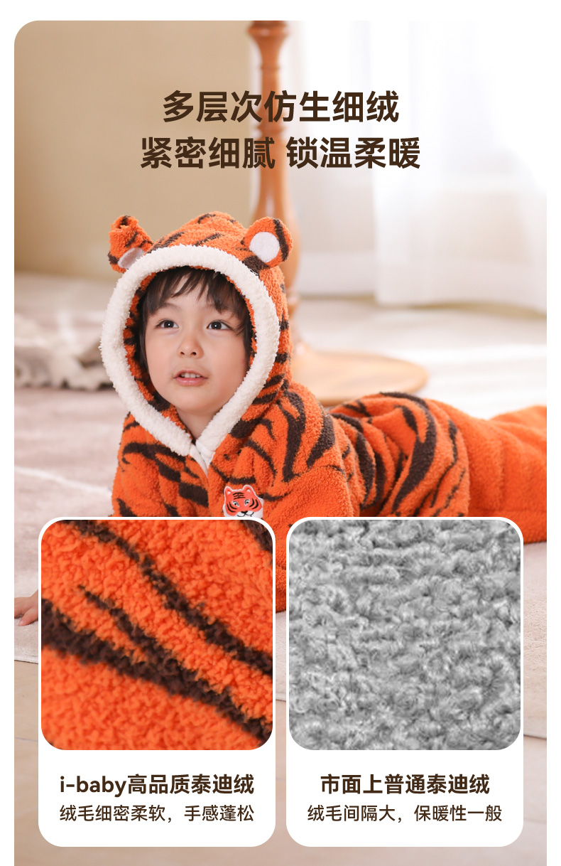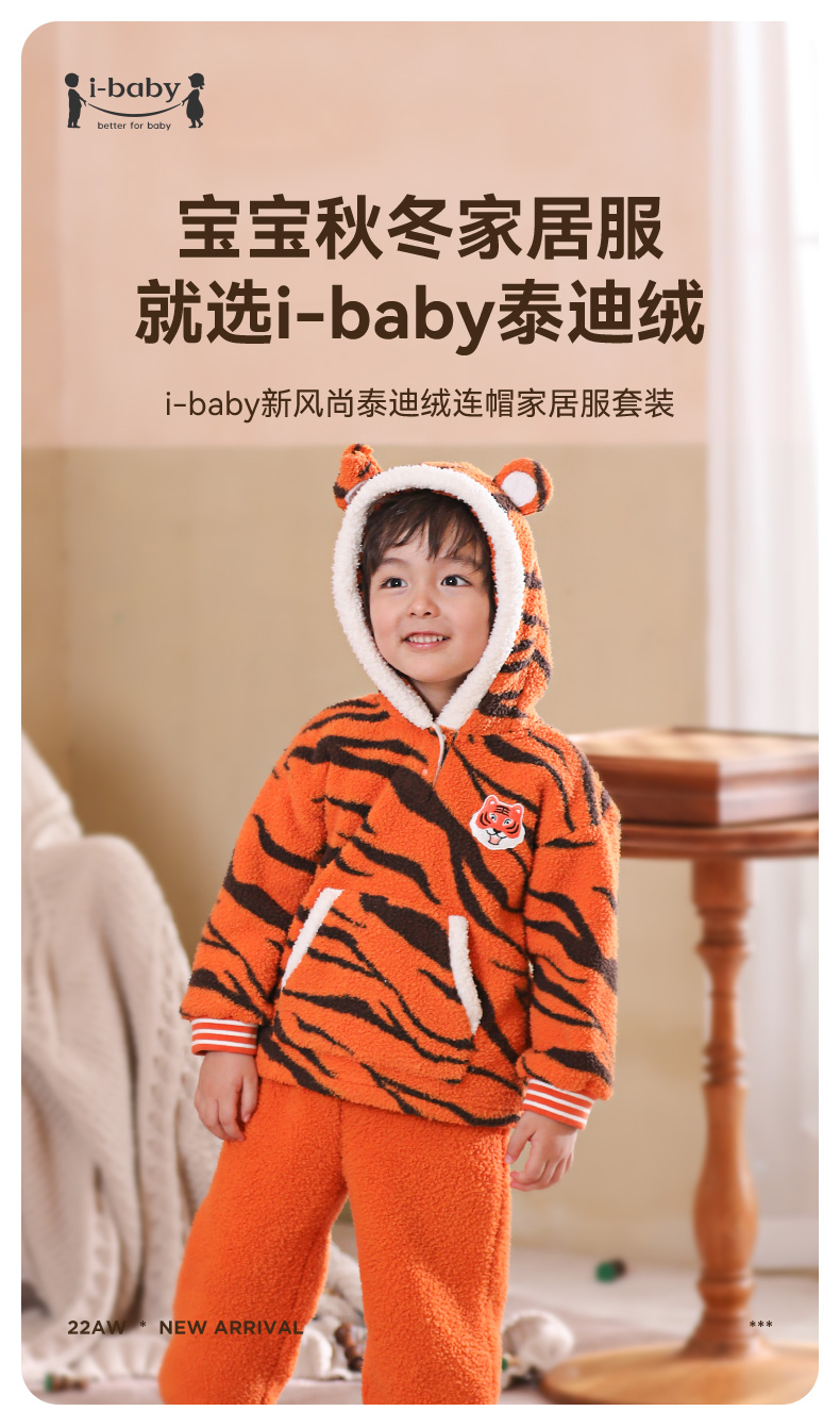 【qhxj】i-baby儿童恒温新风尚泰迪绒连帽家居服套装 新款外出卡通可爱造型睡衣套装
