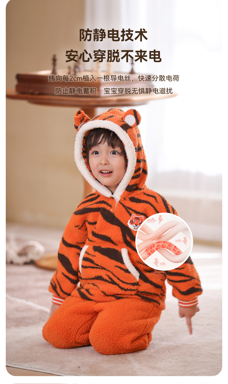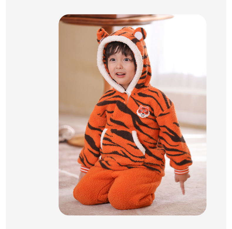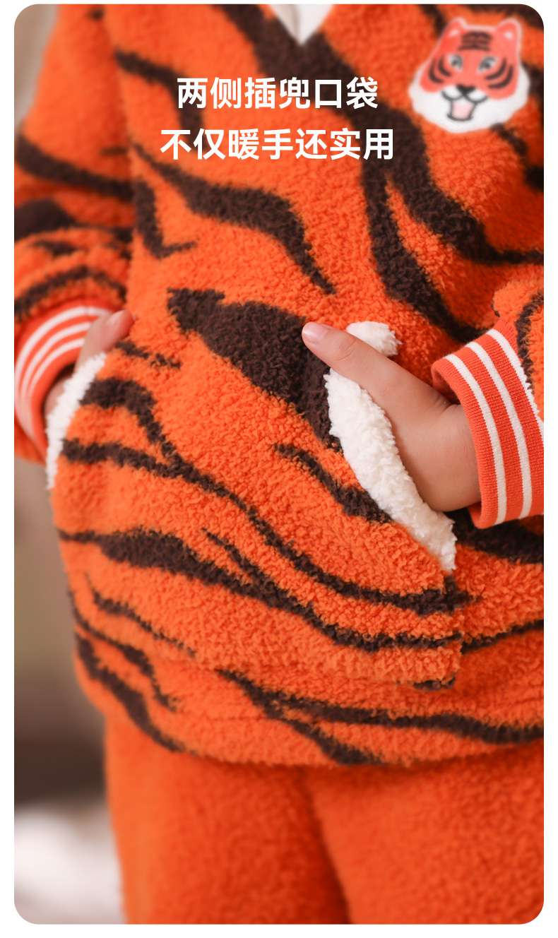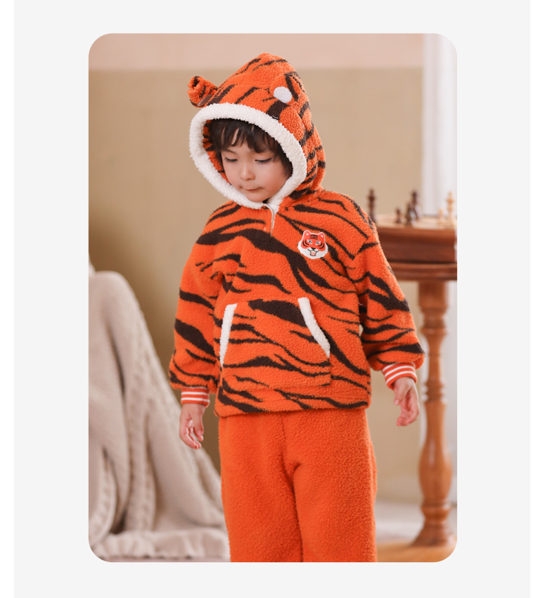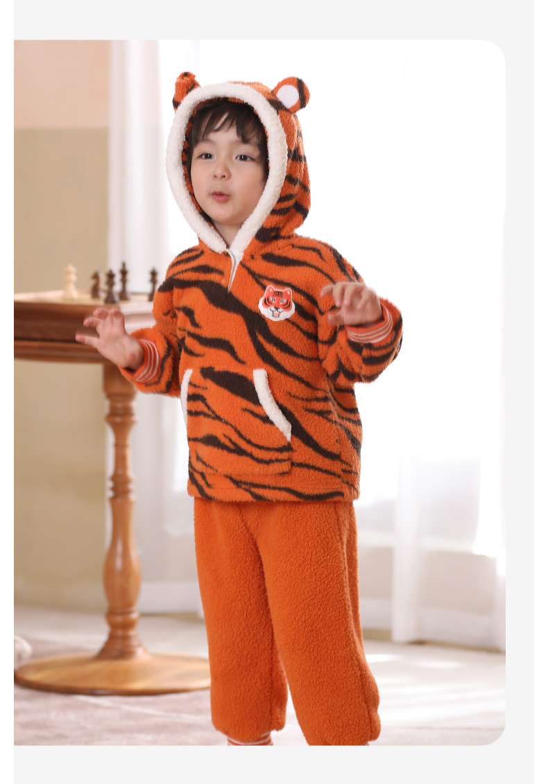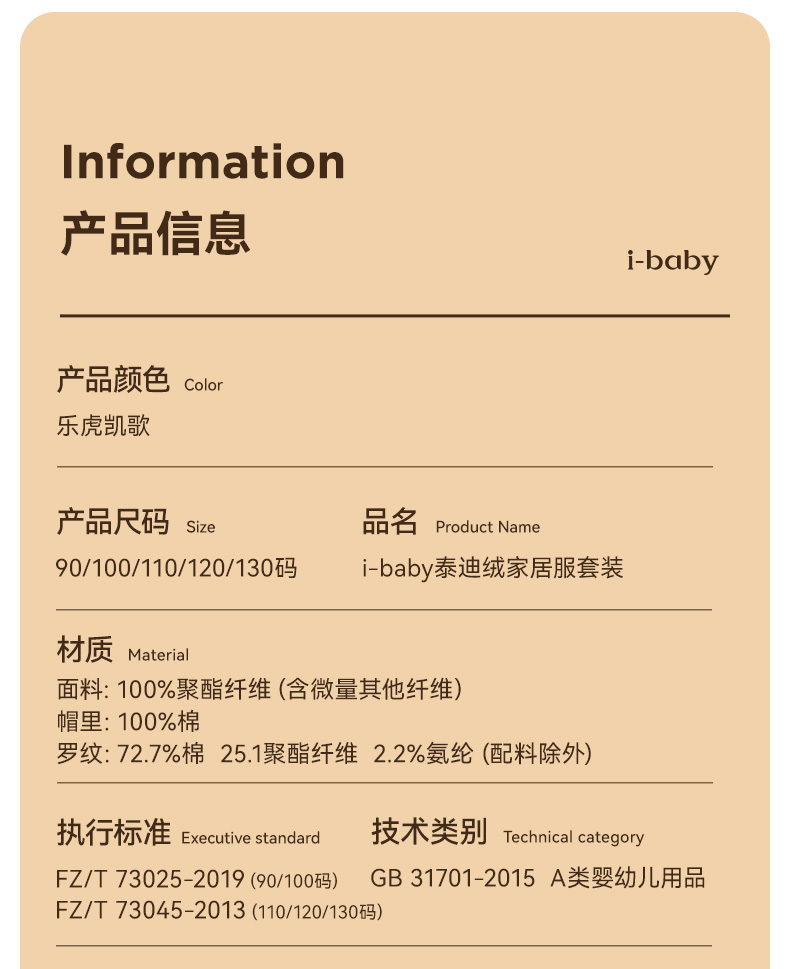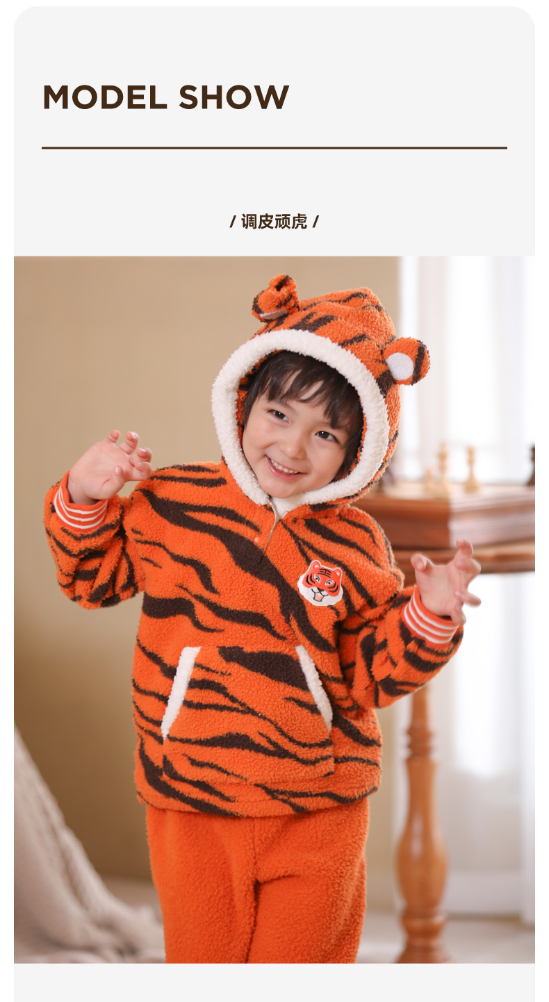 【qhxj】i-baby儿童恒温新风尚泰迪绒连帽家居服套装 新款外出卡通可爱造型睡衣套装