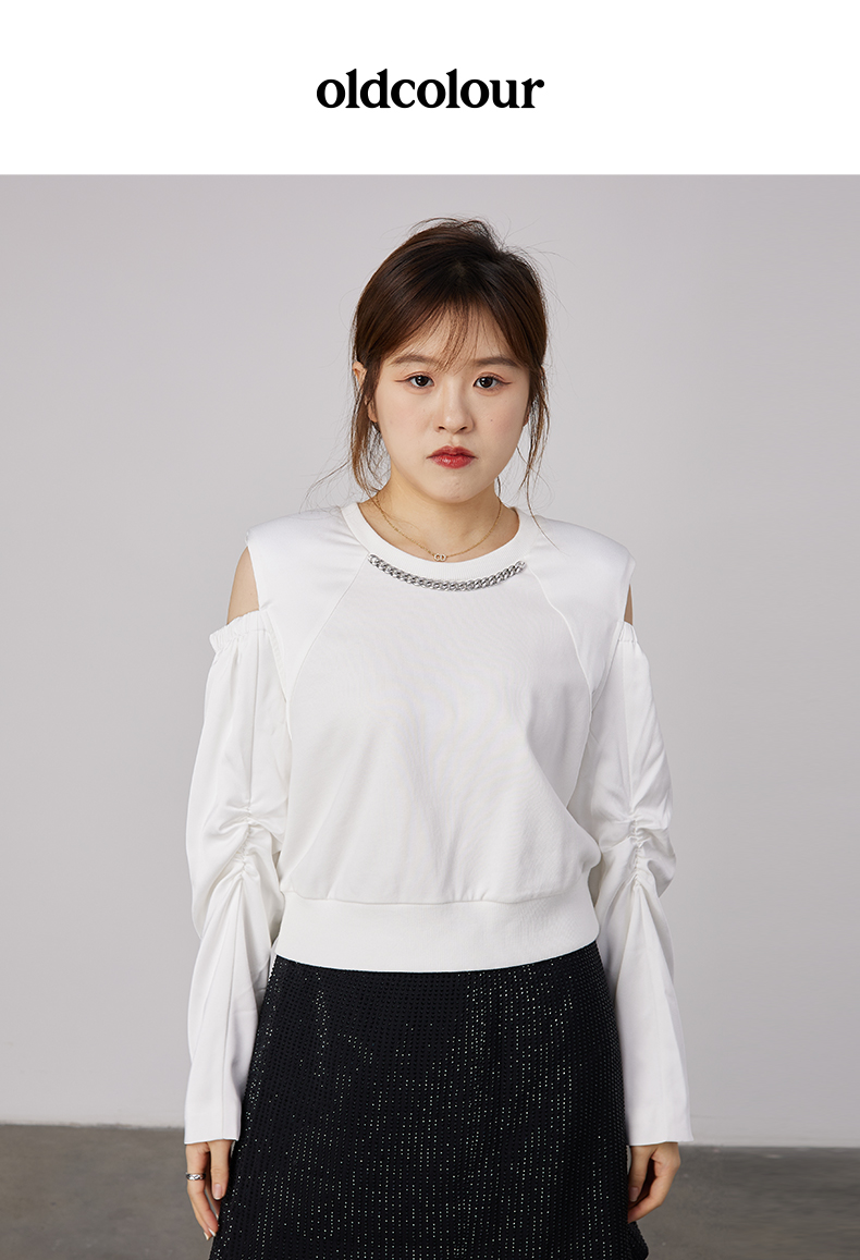 oldcolour春秋商场同款白色设计感小众气质T恤上衣女DN31023806