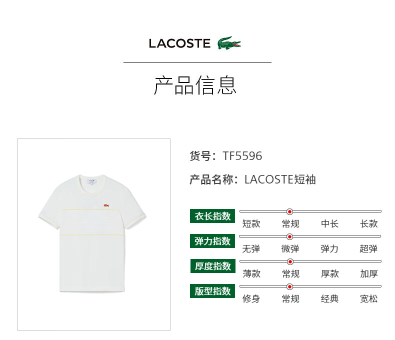 【海南专供价】Lacoste春夏短袖T恤TF5596-10