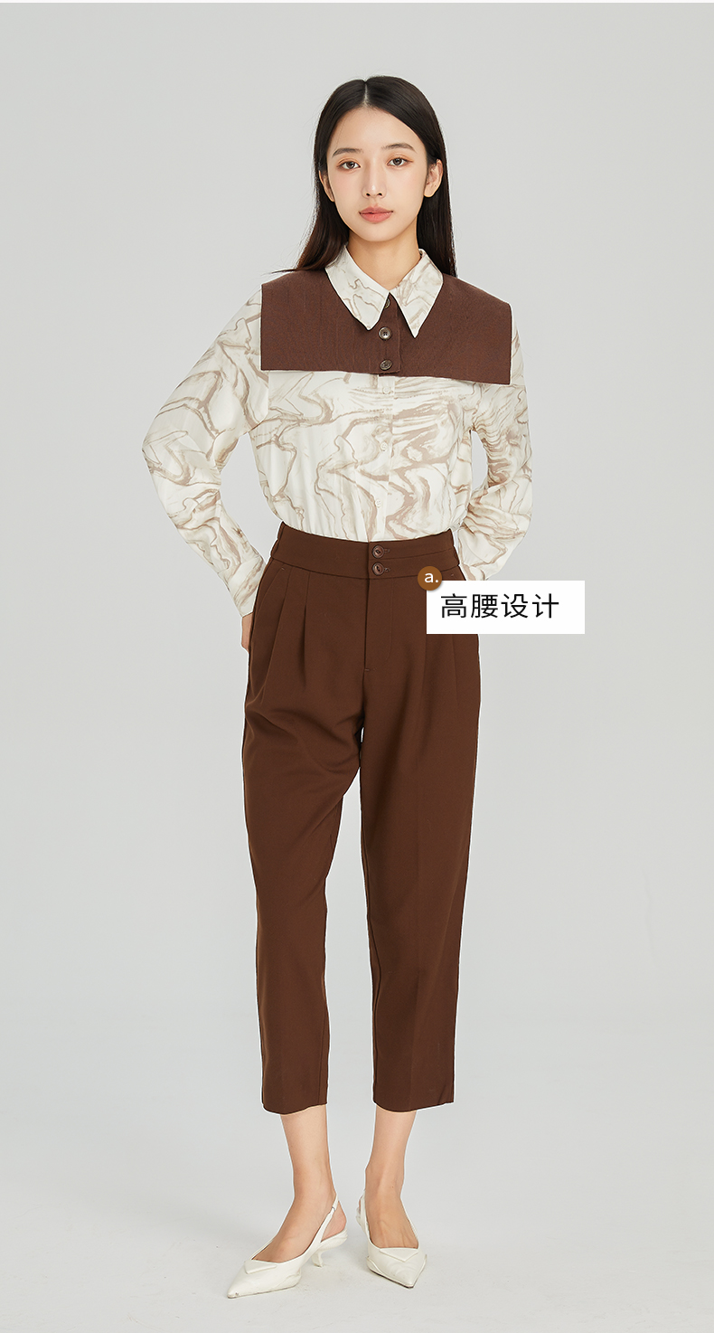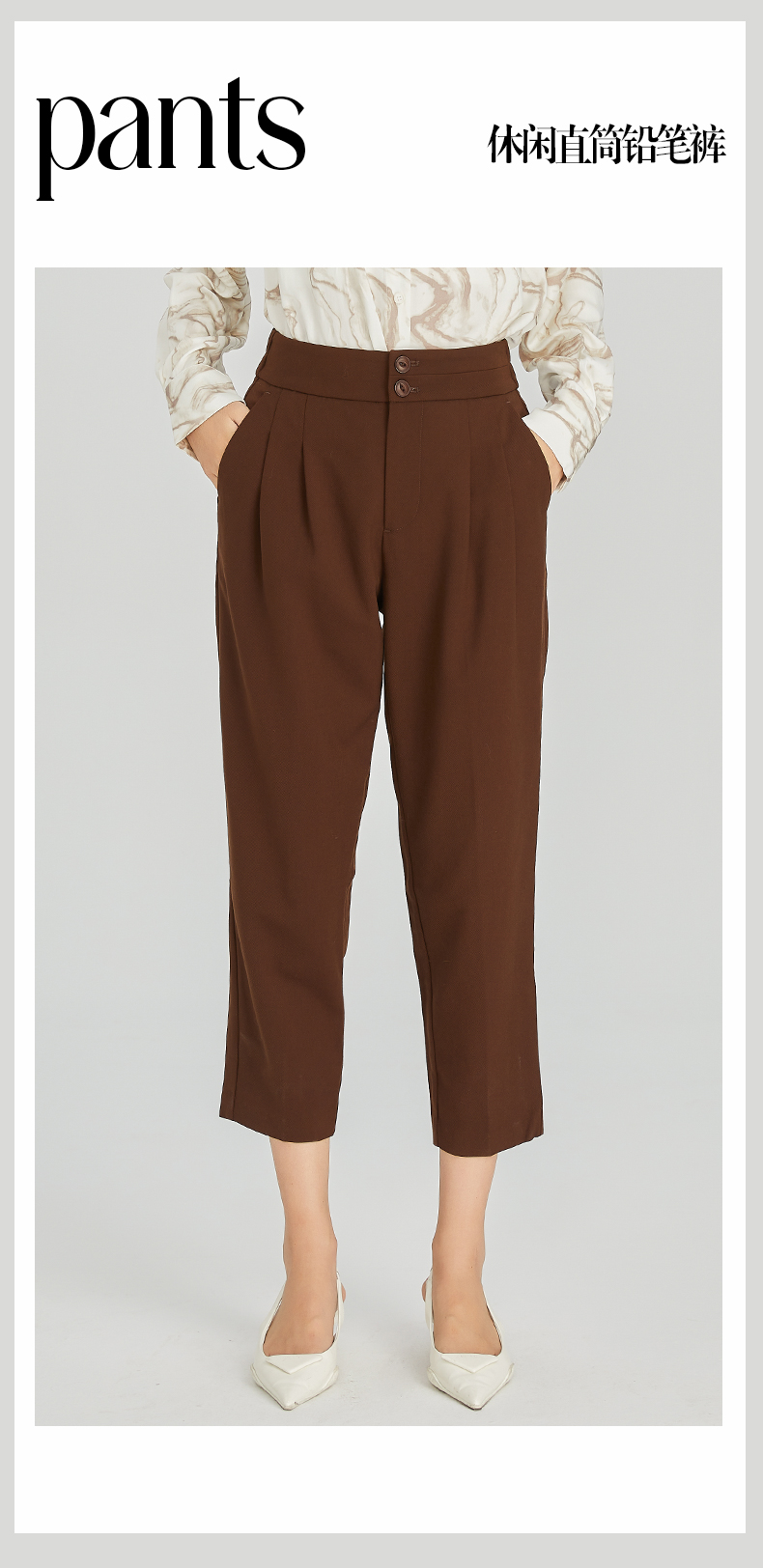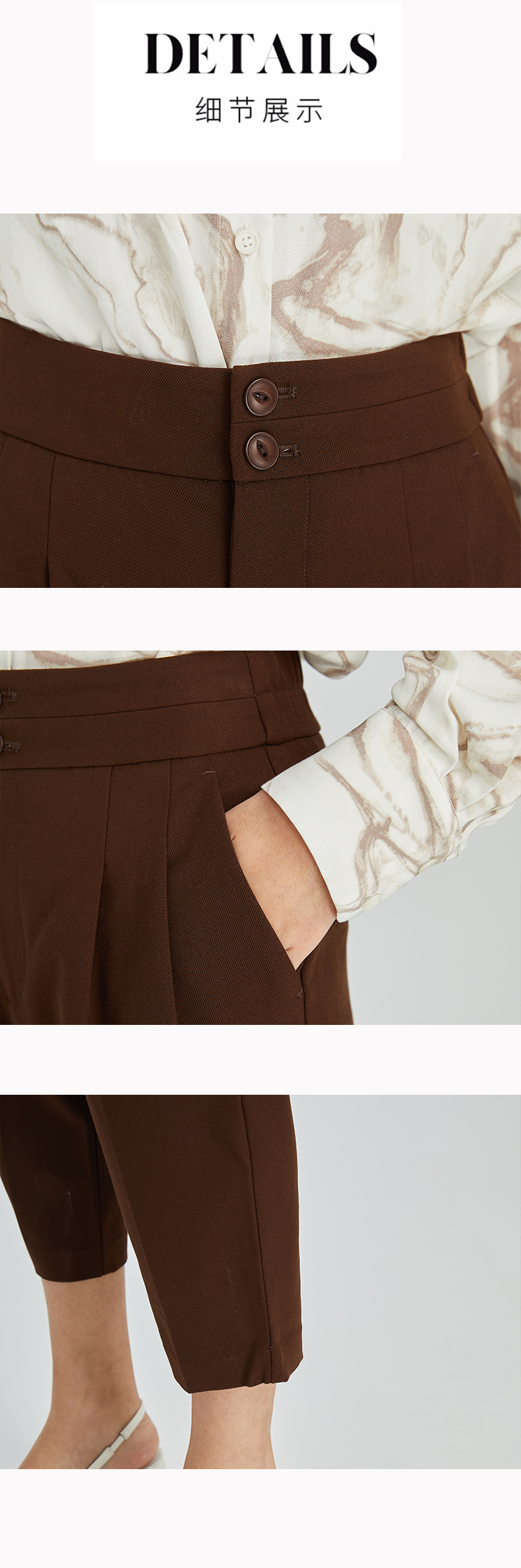 NUTS商场同款春秋复古气质高腰直筒显瘦九分休闲长裤女313073276B