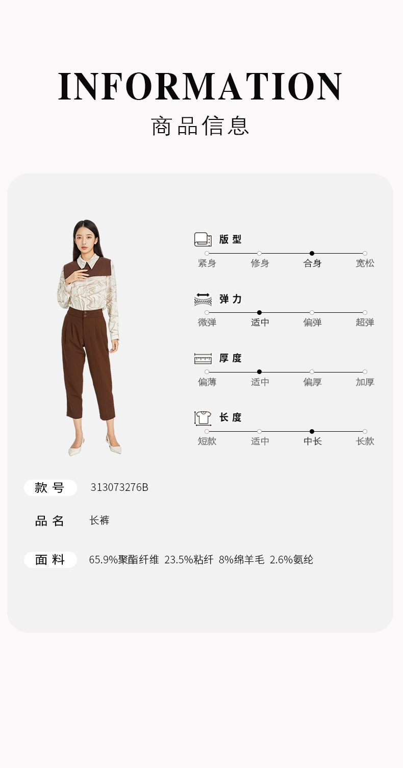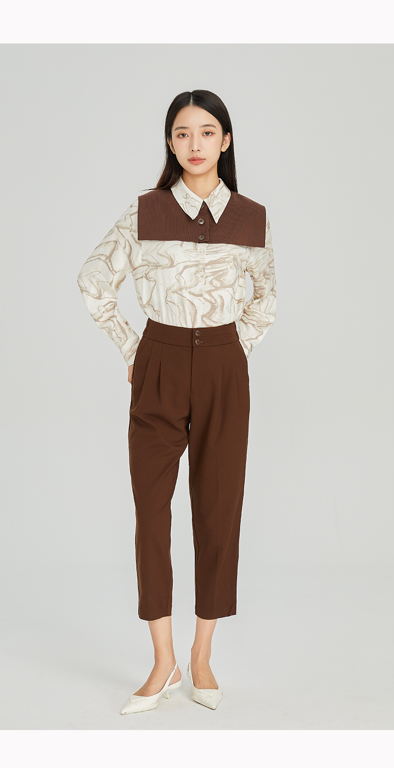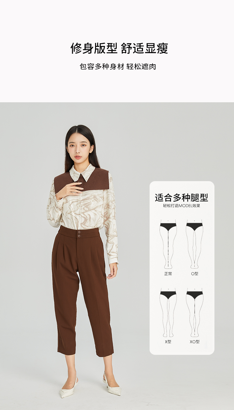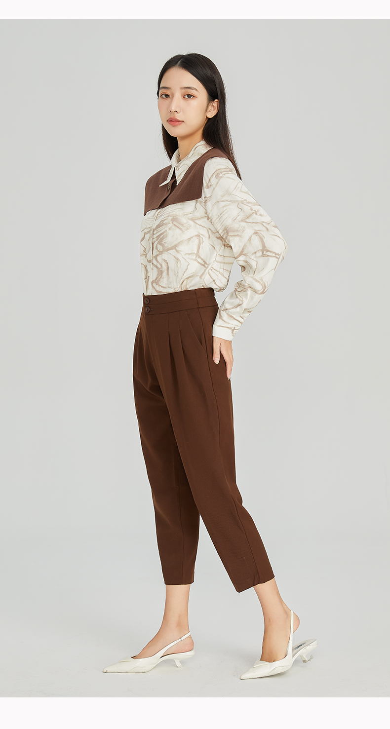 NUTS商场同款春秋复古气质高腰直筒显瘦九分休闲长裤女313073276B